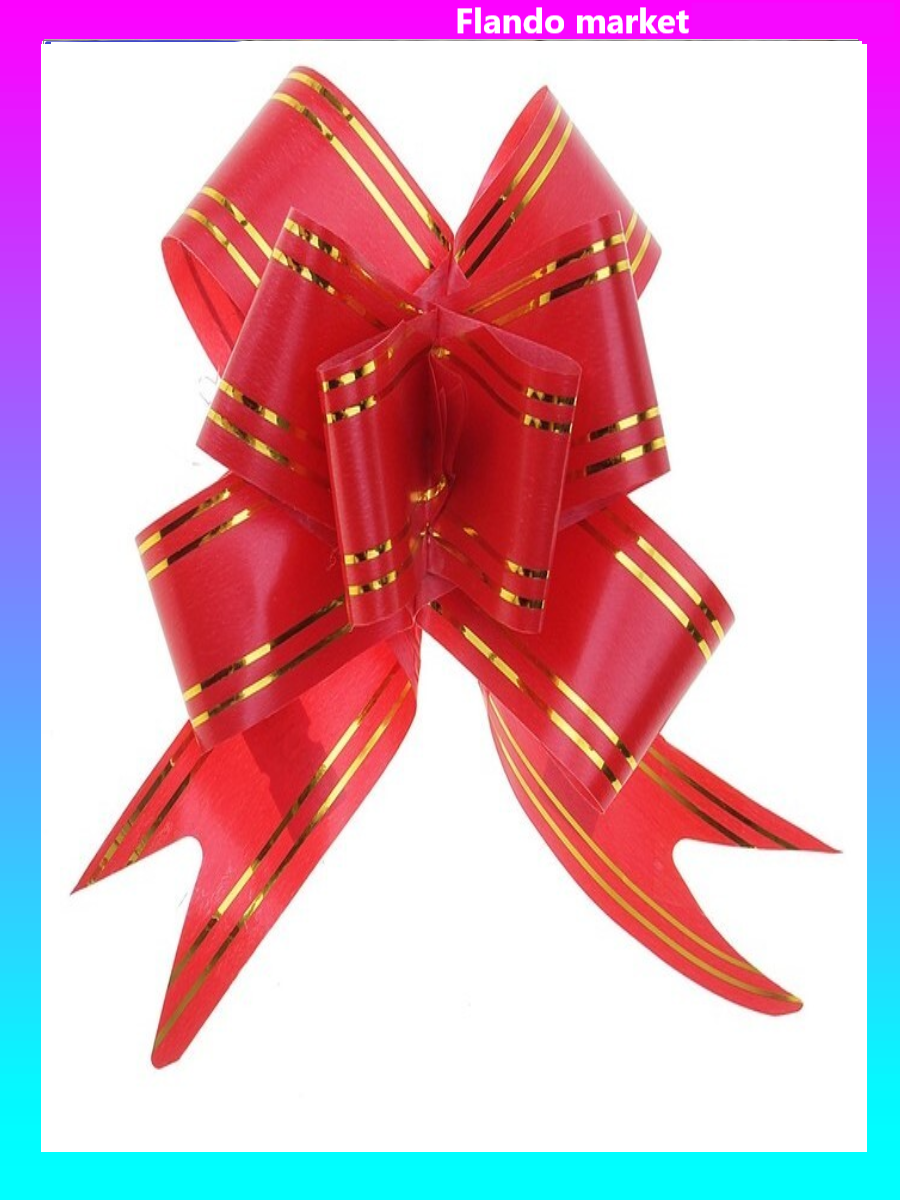 !09 Бант-бабочка (набор 8 штук) №3 "Золотые полосы", цвет красный, d=7-8 см