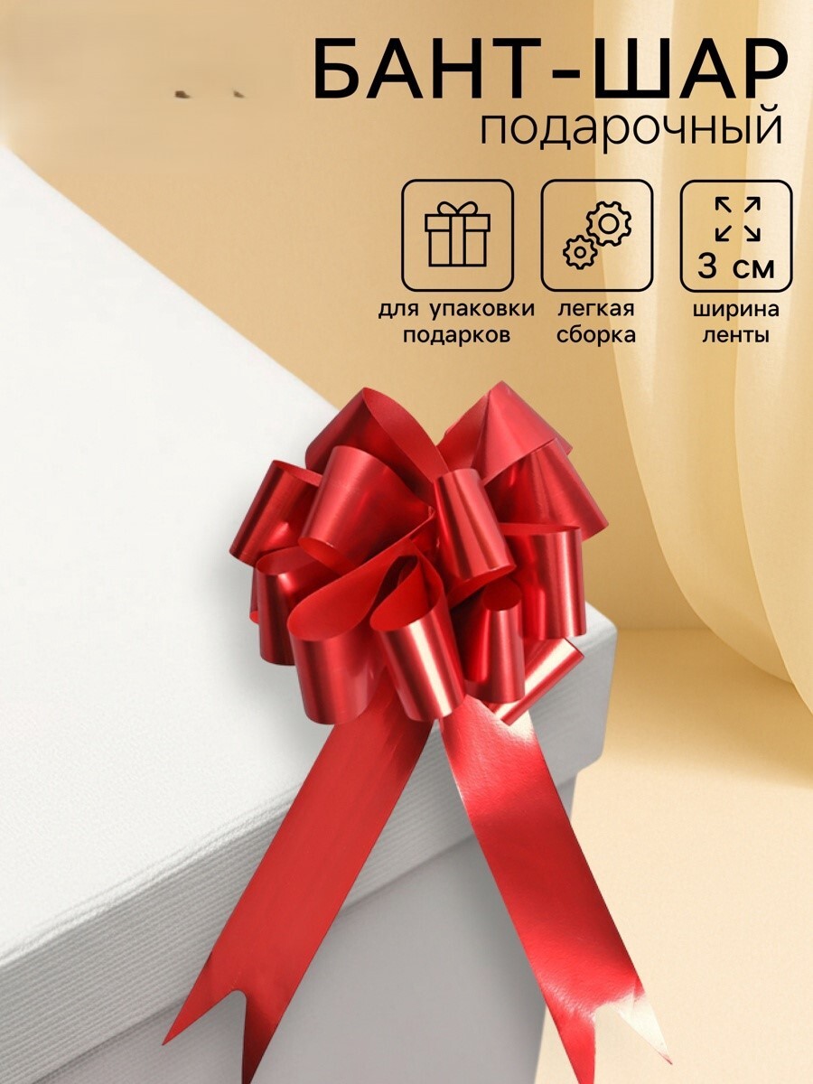 !09 Подарочный бант (набор 12 штук) - шар №3 металлик, цвет красный, для упаковки подарков