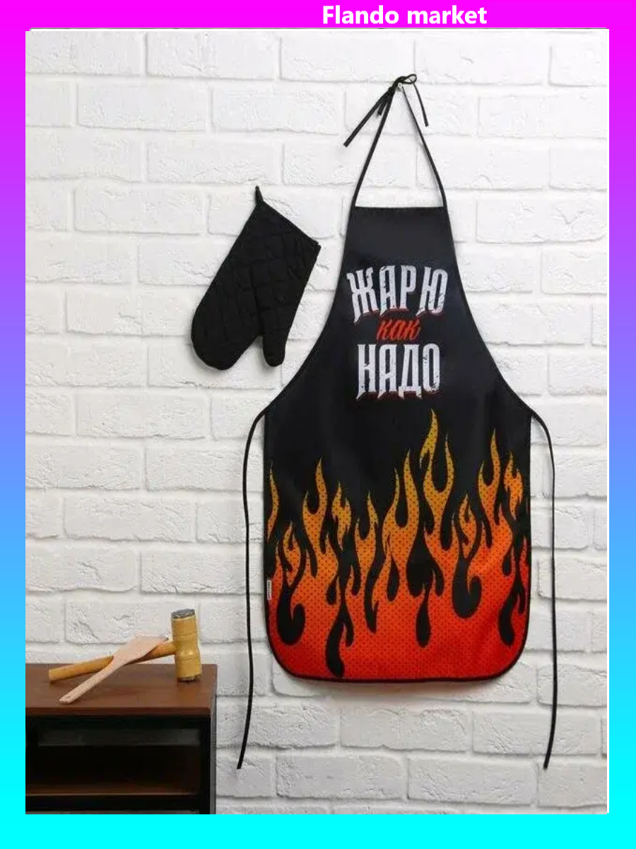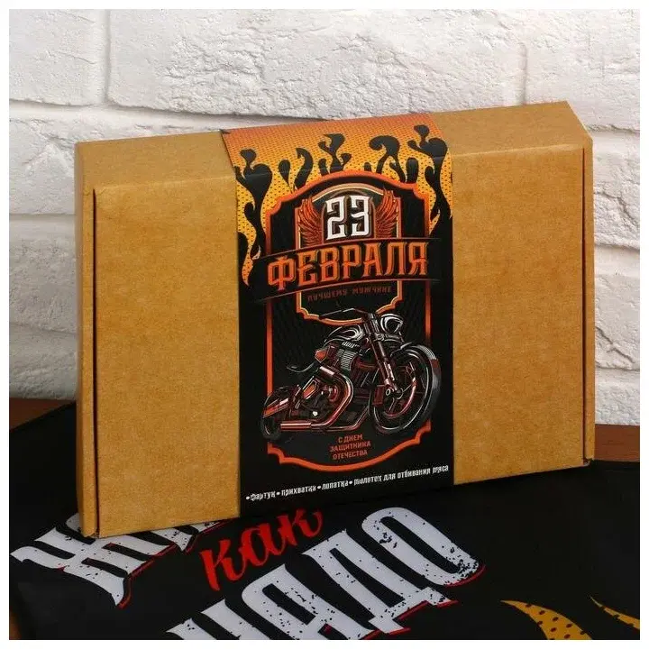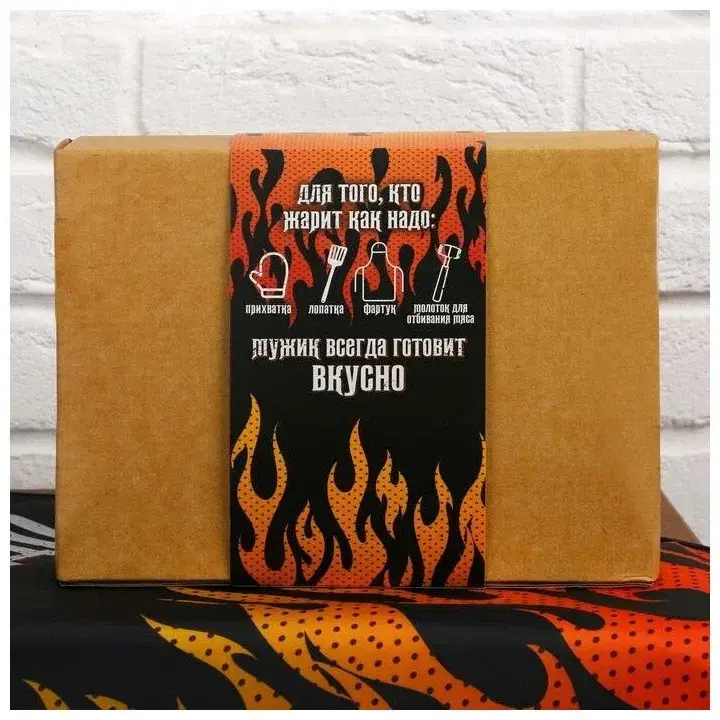 !09 Большой кухонный набор "С 23 февраля!" (фартук, лопатка для жарки, отбивалка и прихватка)