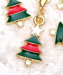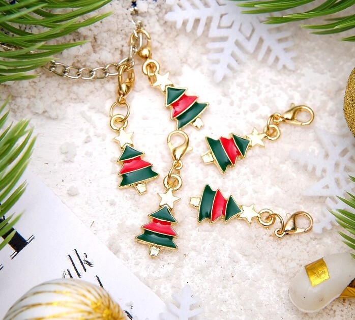 !09 Шарм новогодний (2 штуки) «Ёлочка», цвет зелёно-красный в золоте