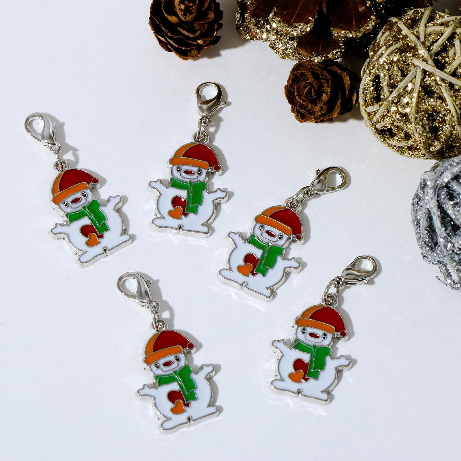 !09 Шарм новогодний (набор 4 штуки) «Снеговик», цветной в серебре