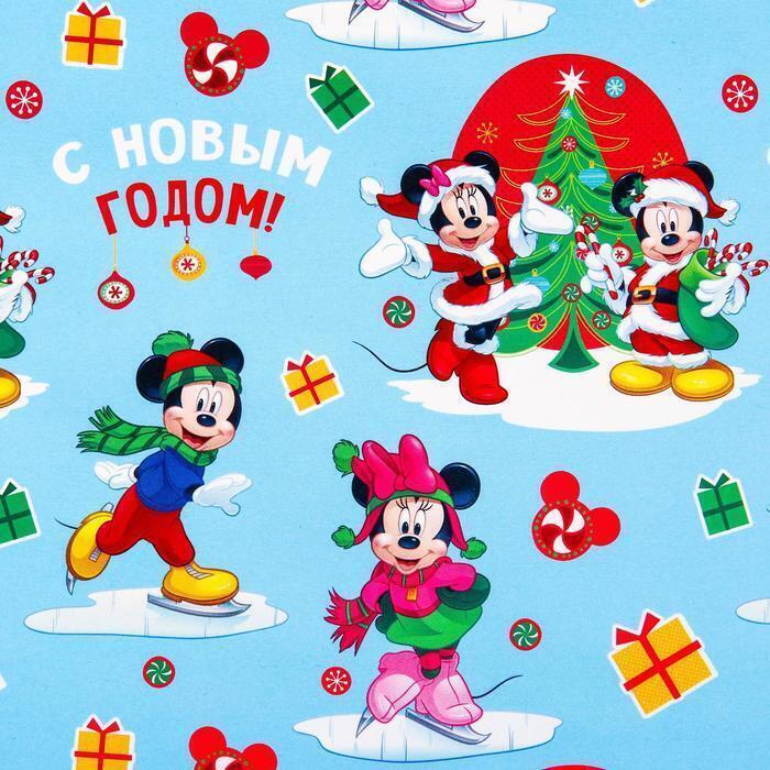 !09 Бумага 2 листа упаковочная глянцевая, 50 х 70 см «Весёлого Нового года!», Микки Маус