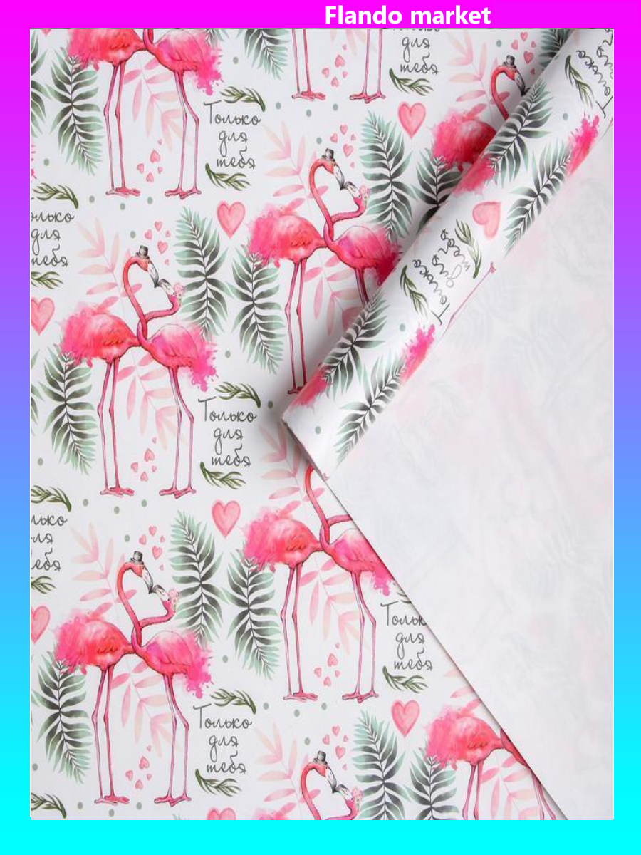 !09 Бумага (набор 3 листа) упаковочная глянцевая «Влюбленные фламинго», 70 × 100 см.