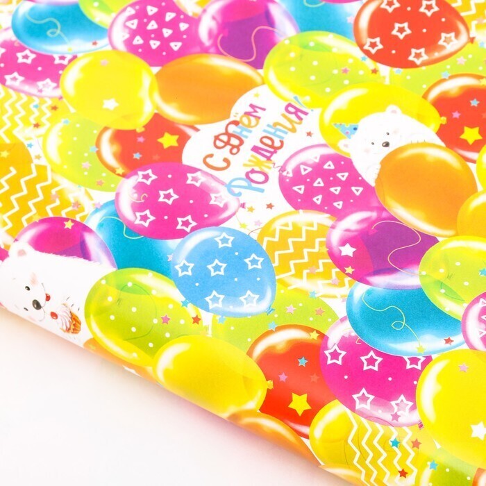 !09 Бумага глянцевая (набор 4 листа) "Яркие шарики" 50 × 70 см.