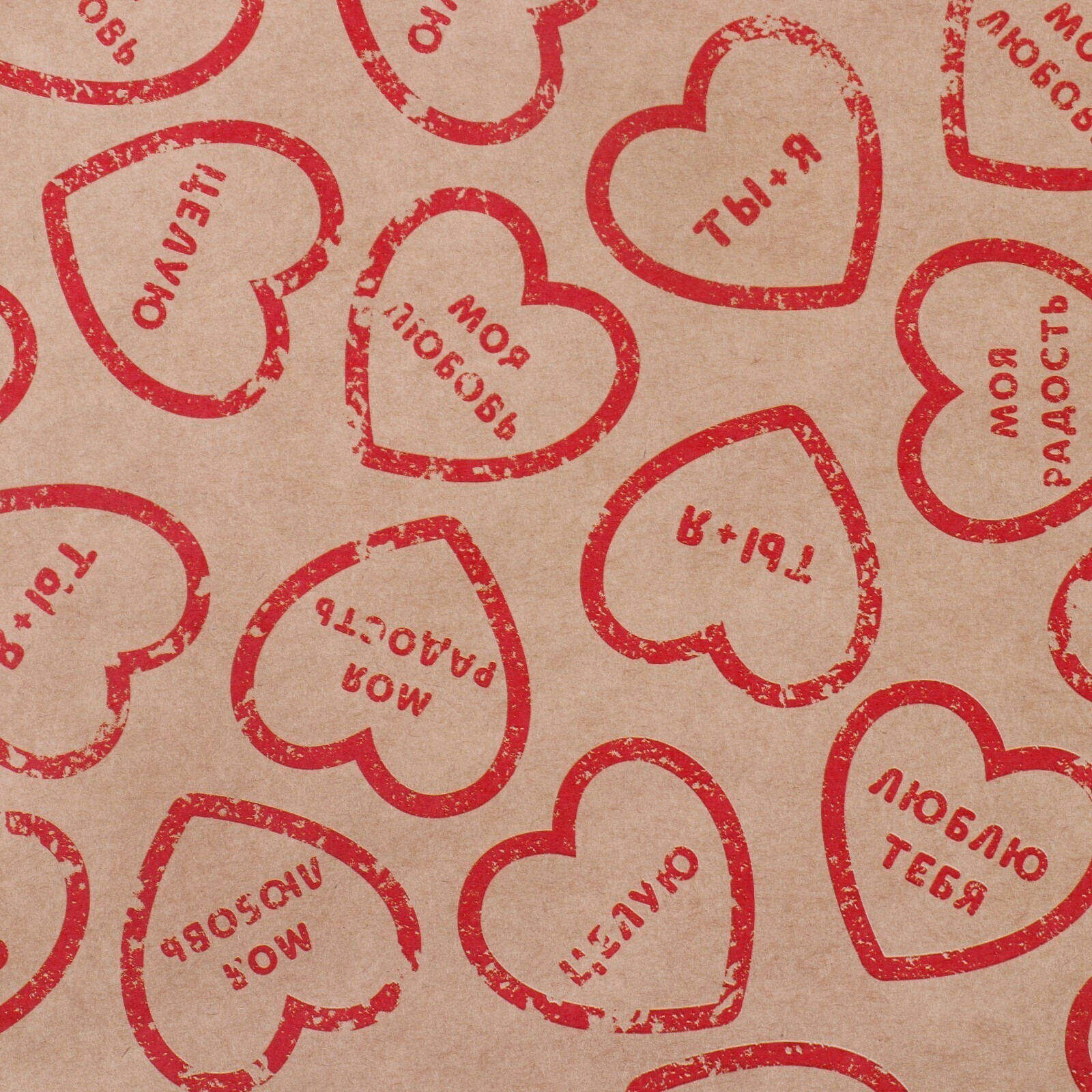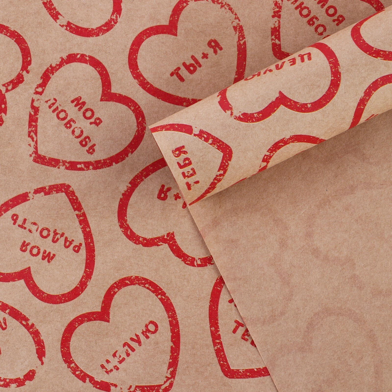 !09 Бумага крафт (набор 4 листа) «Сердечки» фон красный 50 × 70 см.