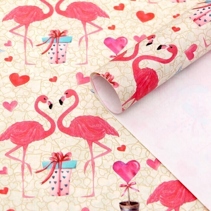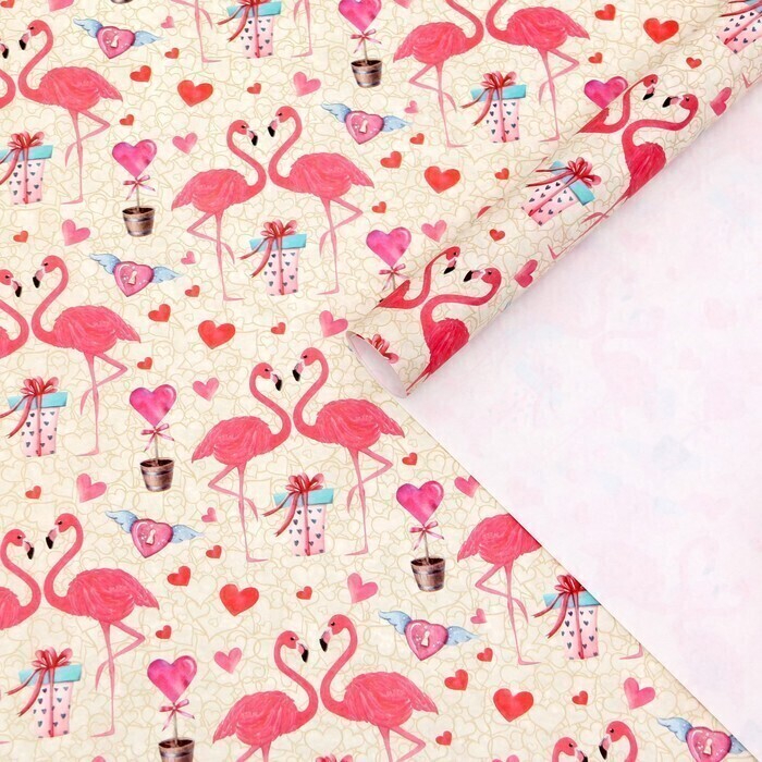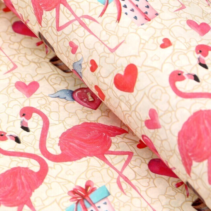 !09 Бумага крафт (набор 5 листов) «Розовый фламинго» 50 × 70 см.