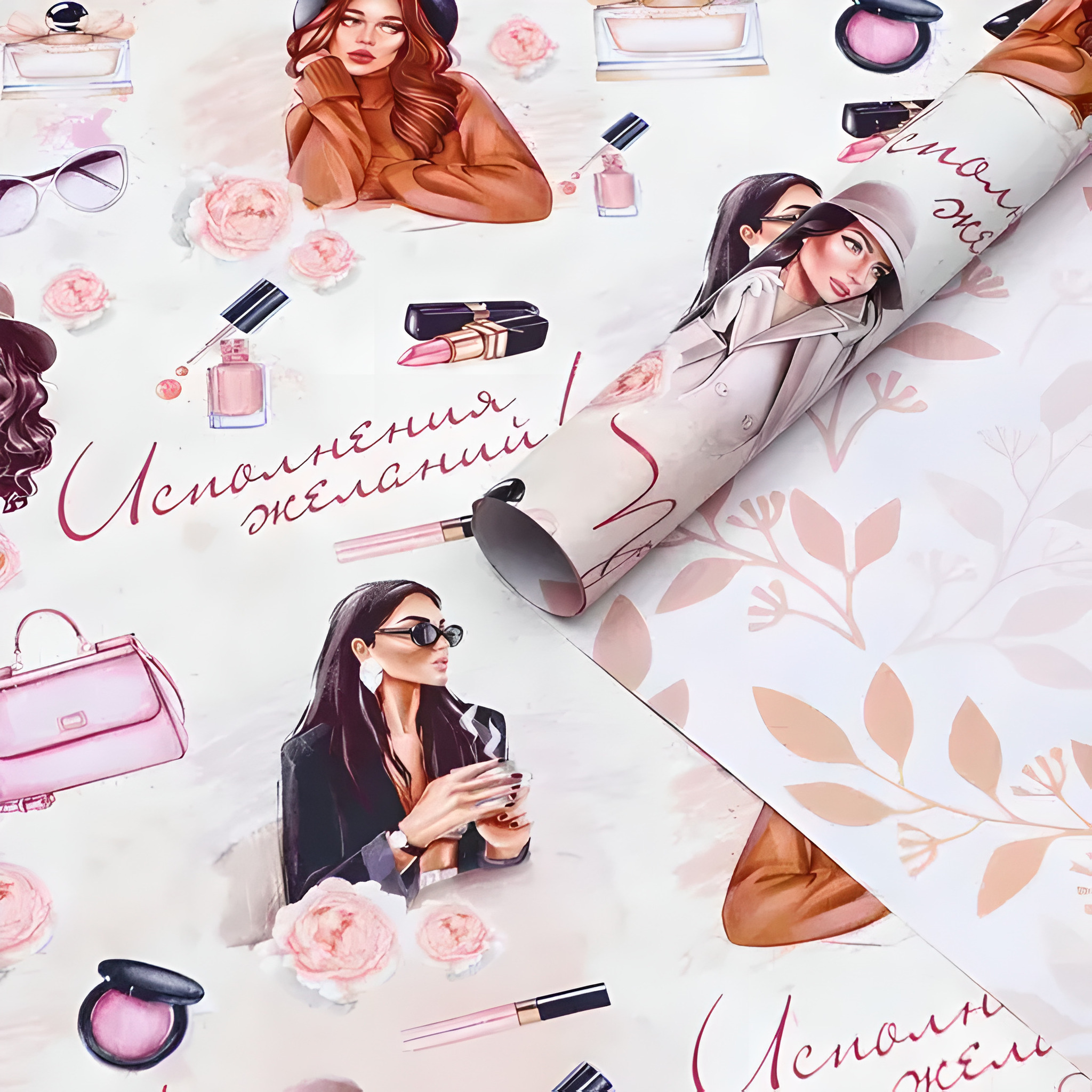 !09 Бумага глянцевая (набор 5 листов) "Счастья и любви", двусторонняя 50 × 70 см.