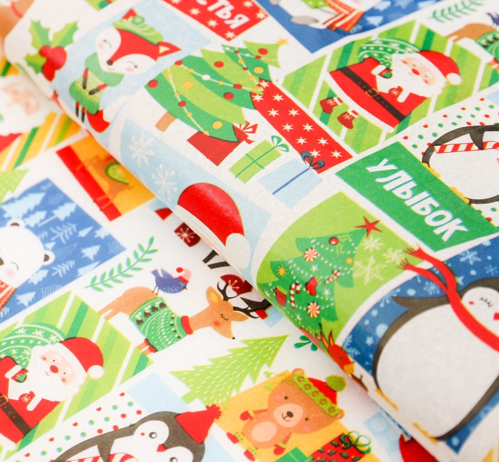 !09 Бумага (набор 10 листов) упаковочная тишью: «Тепла и уюта», 50 × 70 см.(7 листов) + «Улыбок в Новом Году!», 50 × 70 см.(3 листа)