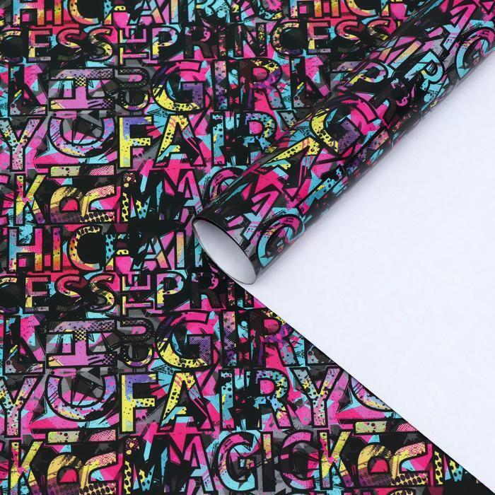 !09 Бумага (набор 4 листа) упаковочная глянцевая "Графика", розовая 50 × 70 см.