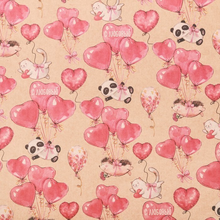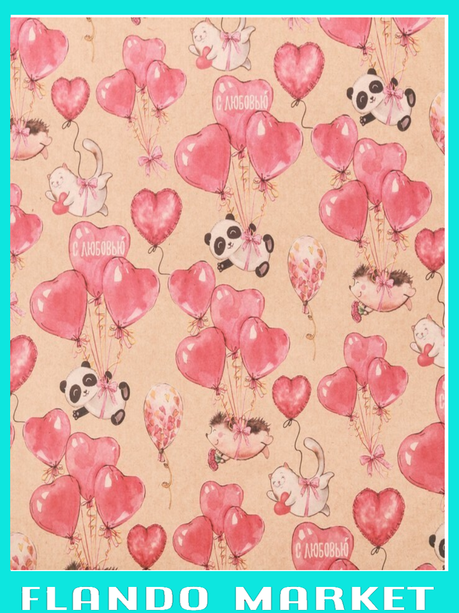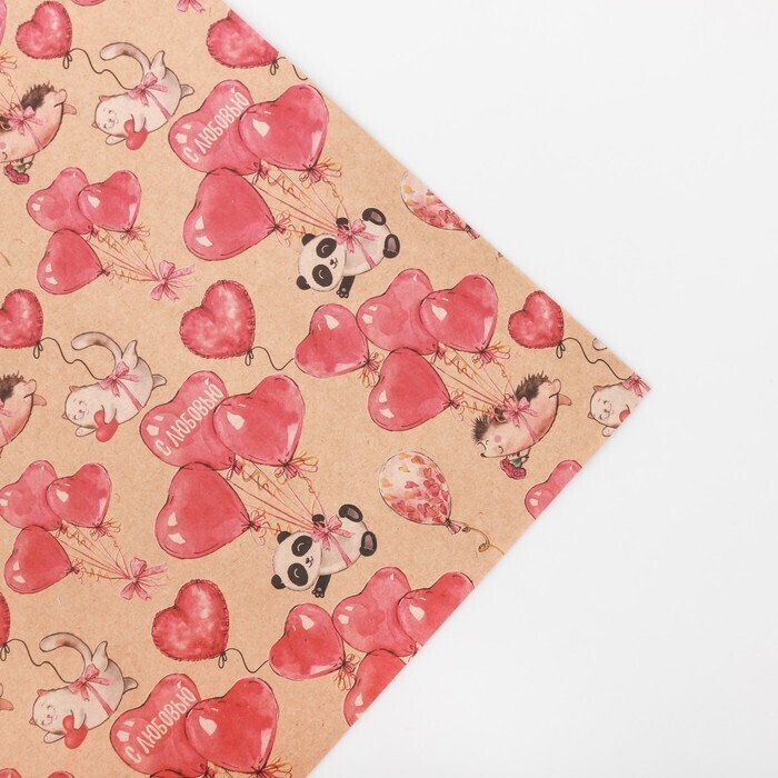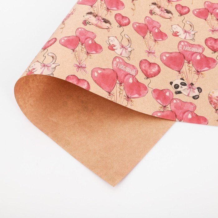 !09 Бумага (набор 2 листа) упаковочная крафтовая «С любовью» 50 × 70 см.