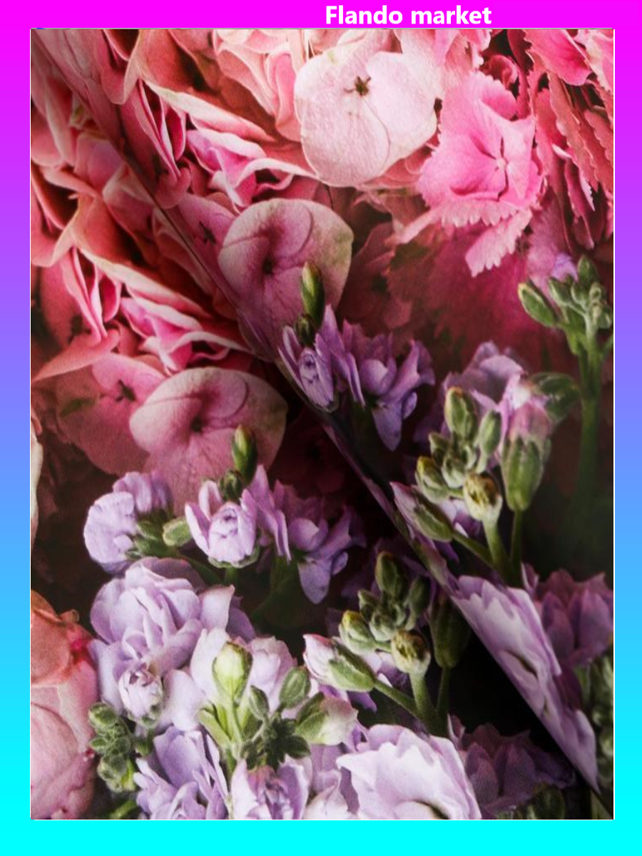 !09 Бумага (набор 4 листа) упаковочная глянцевая "Букет цветов" 50 × 70 см.