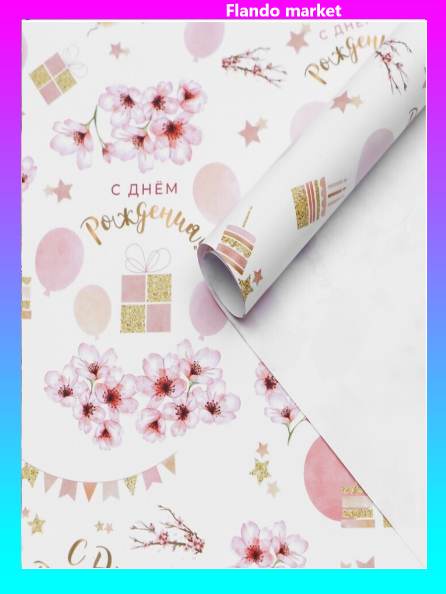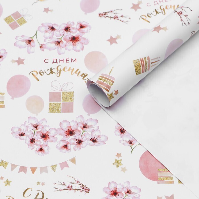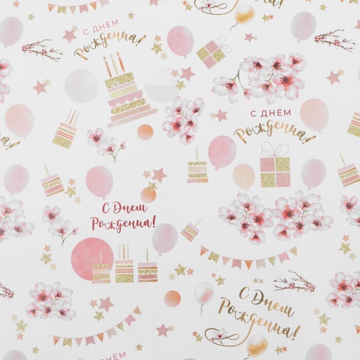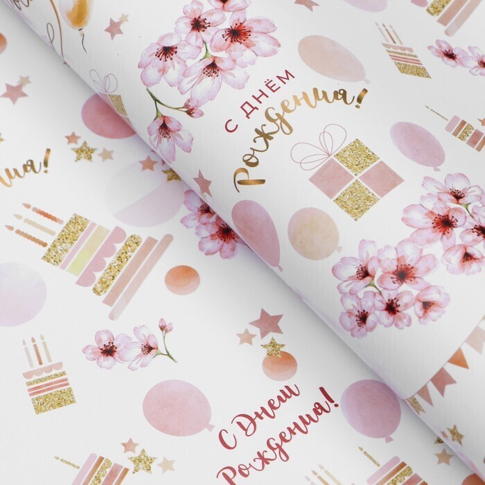 !09 Бумага (набор 3 листа) упаковочная глянцевая "С Днем Рождения" 50 × 70 см.