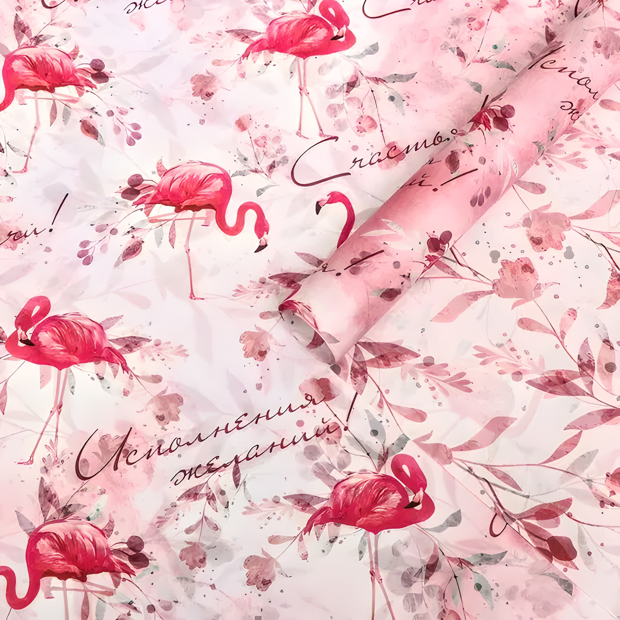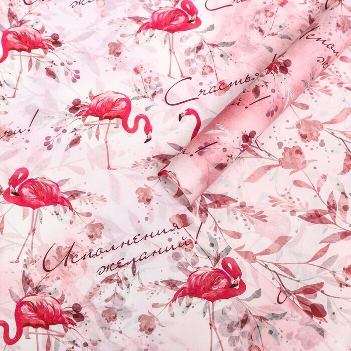 !09 Бумага (набор 2 листа) упаковочная глянцевая «Фламинго», 70 × 100 см.
