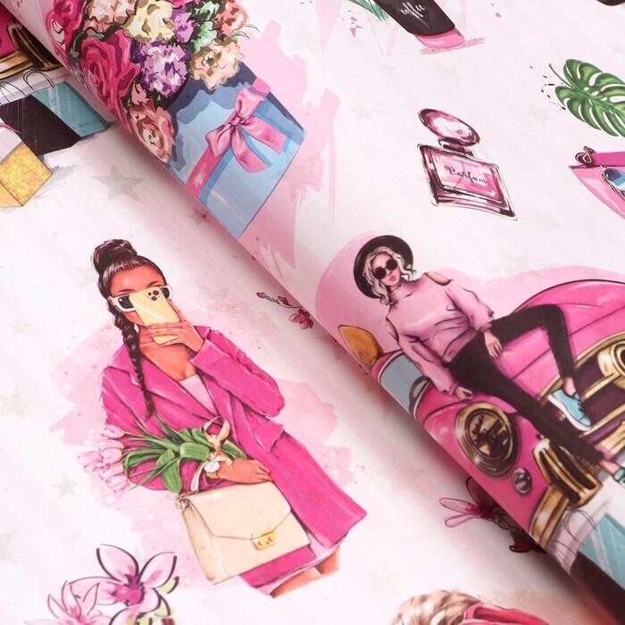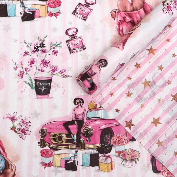 !09 Бумага (набор 3 листа) упаковочная глянцевая двухсторонняя «Кокетка», 70 × 100 см.