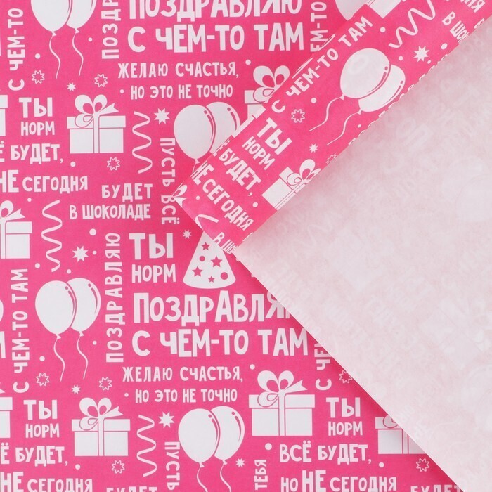 !09 Бумага (набор 4 листа) упаковочная крафтовая "Поздравляю" 50 × 70 см.