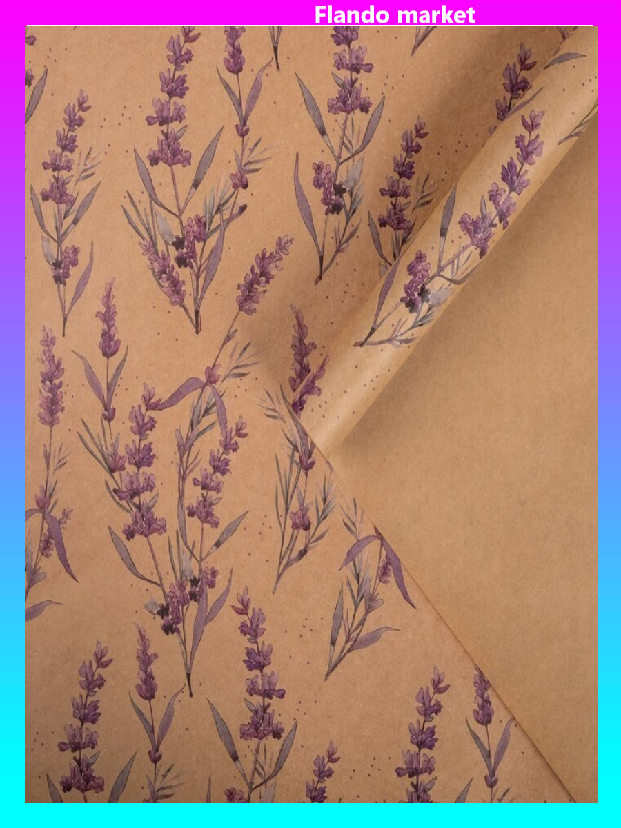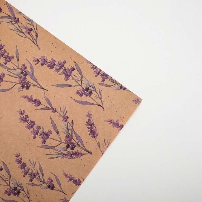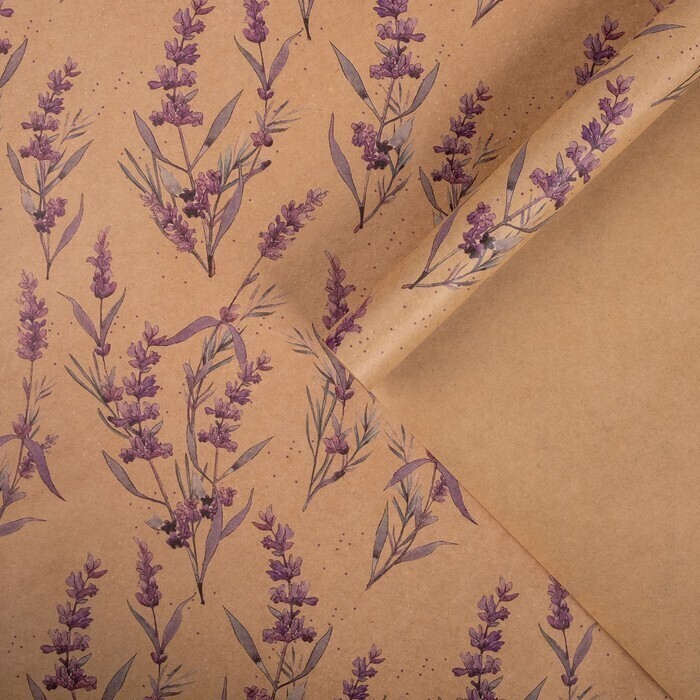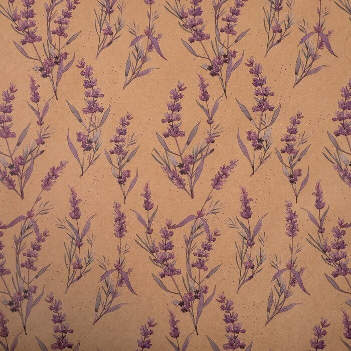 !09 Бумага (набор 4 листа) упаковочная крафтовая «Ветки лаванды» 50 × 70 см.