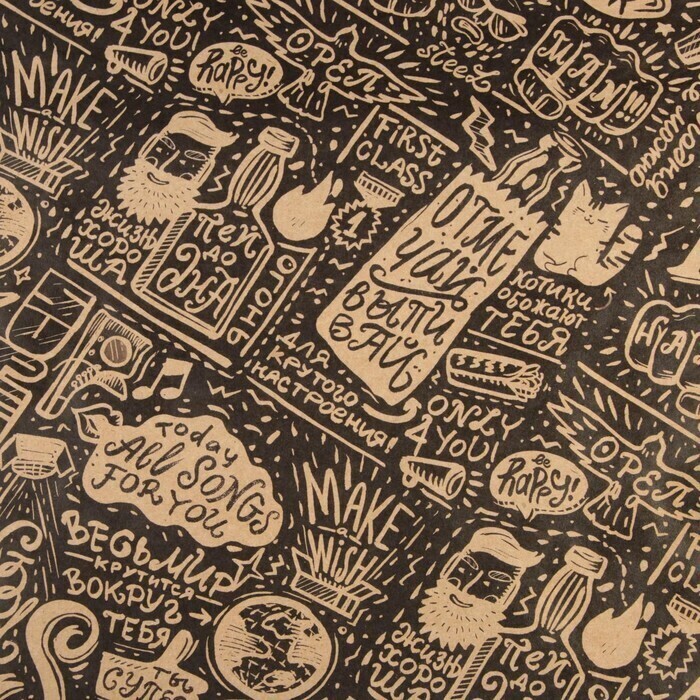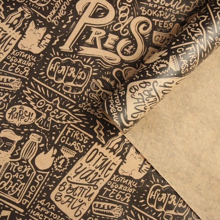!09 Бумага (набор 5 листов) упаковочная крафтовая "Present" 70 х 100 см