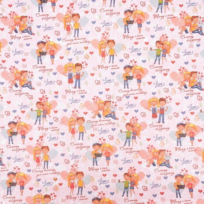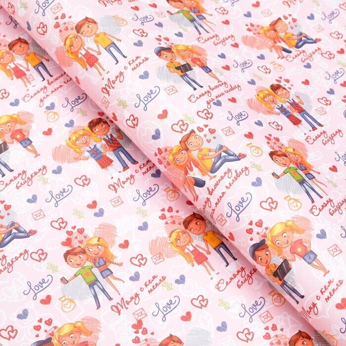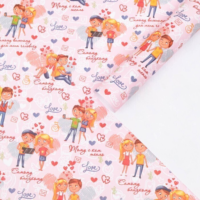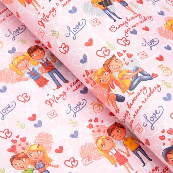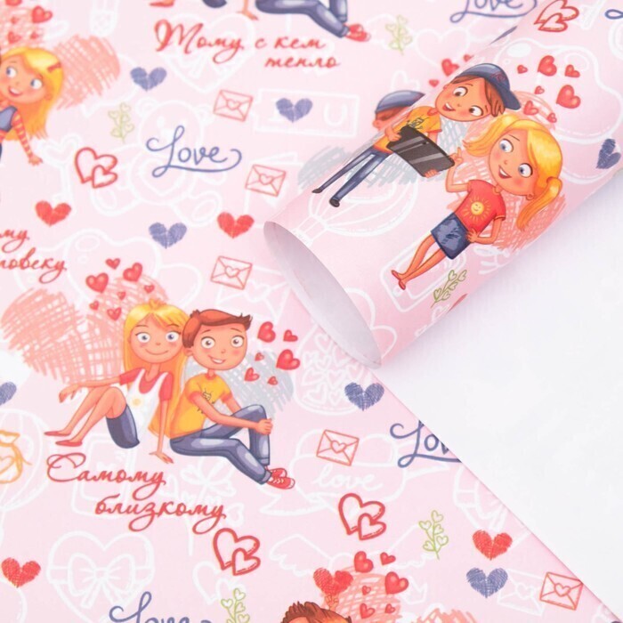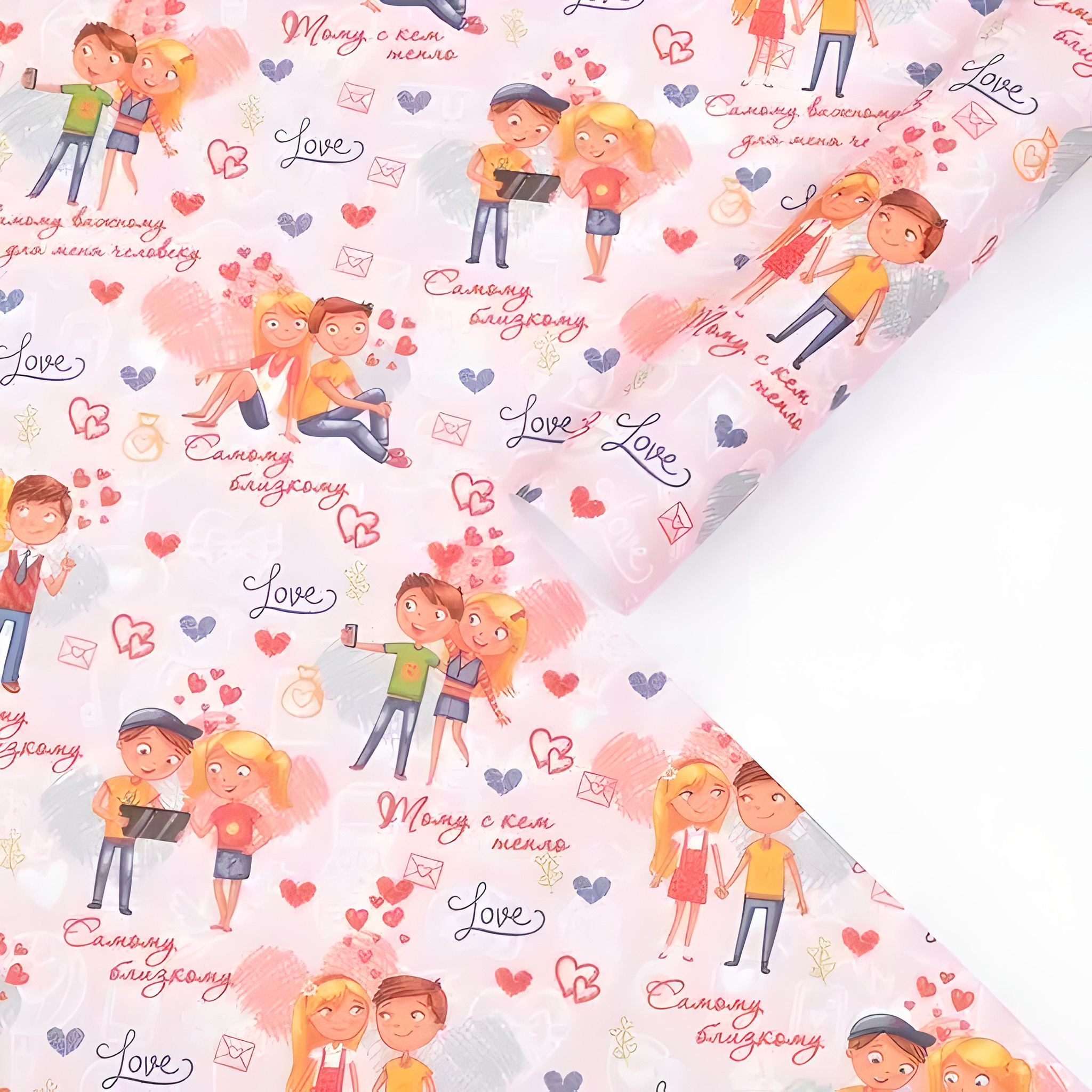 !09 Бумага (набор 5 листов) упаковочная глянцевая "Парочки", 70 х 100 см.