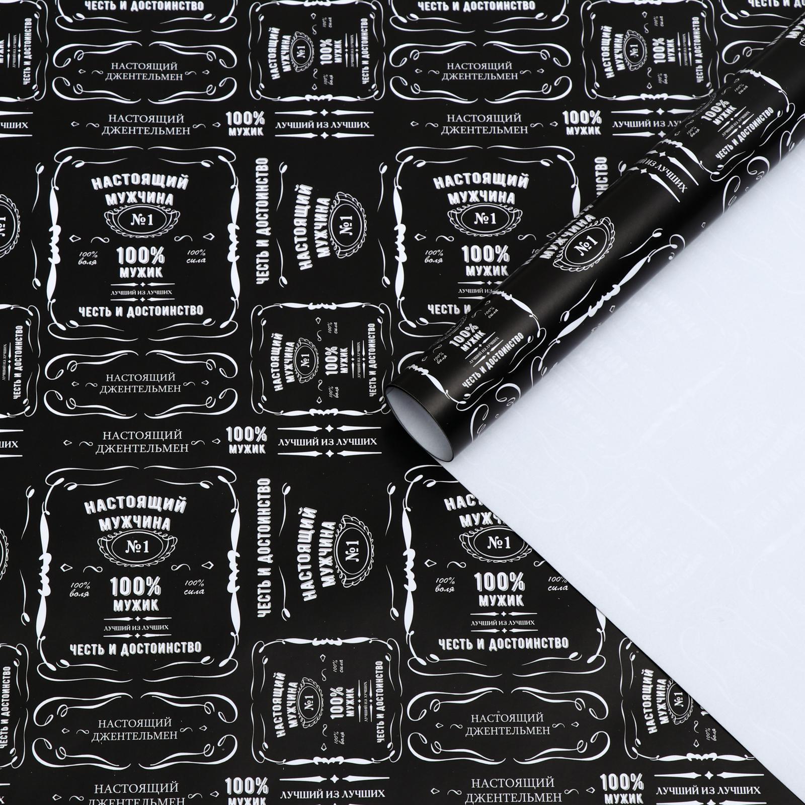 !09 Бумага (набор 5 листов) упаковочная глянцевая «100% мужик» 50 × 70 см.