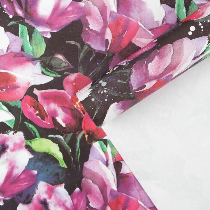 !09 Бумага (набор 3 листа) упаковочная крафтовая «Цветы», 70 × 100 см.