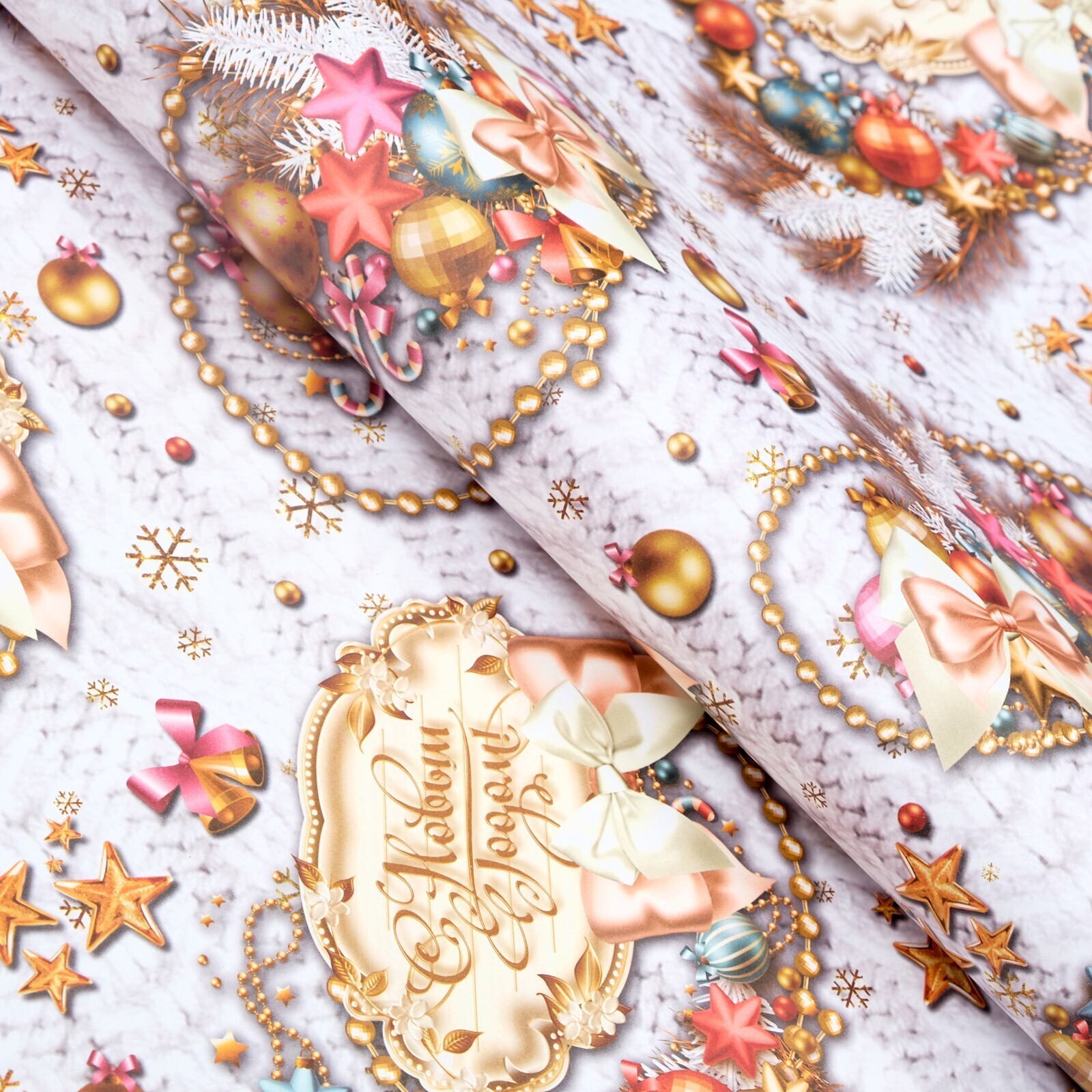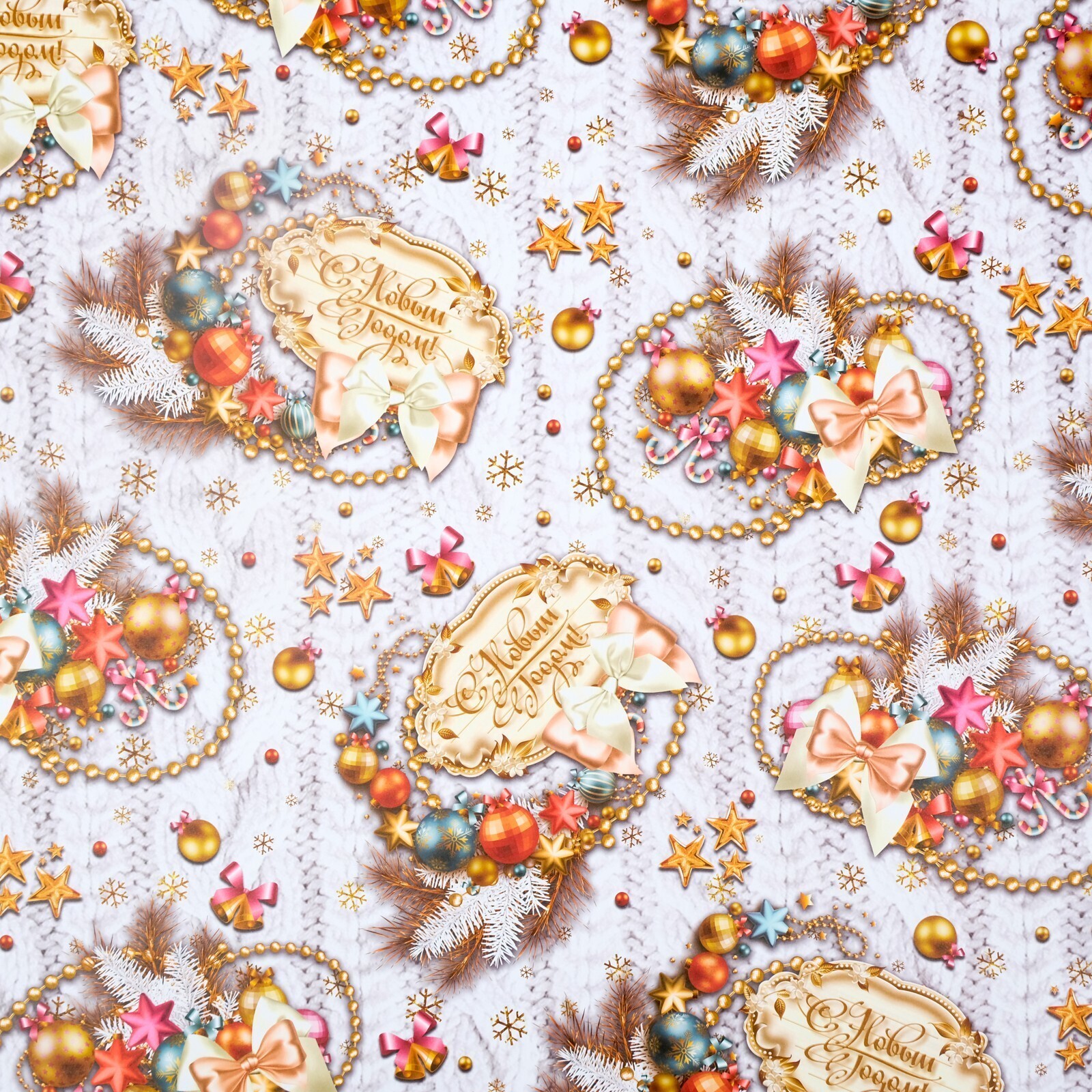 !09 Бумага упаковочная 2 листа глянцевая "Вязанка на белом", 70 х 100 см.