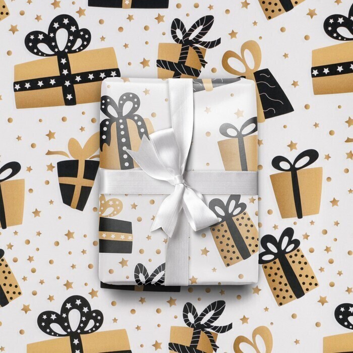 !09 Бумага упаковочная 4 листа глянцевая «Большие подарки», 70 × 100 см/