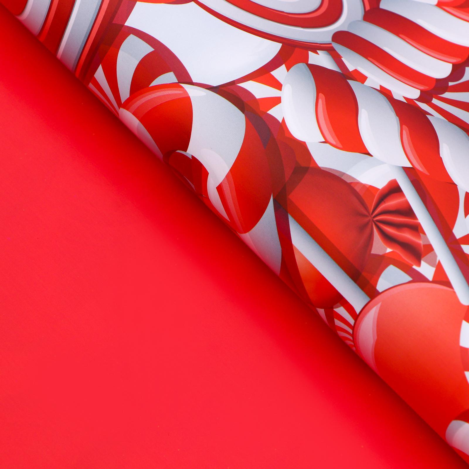 !09 Бумага упаковочная 3 листа глянцевая двухсторонняя «Лабиринт», цвет красный 50 х 70 см.