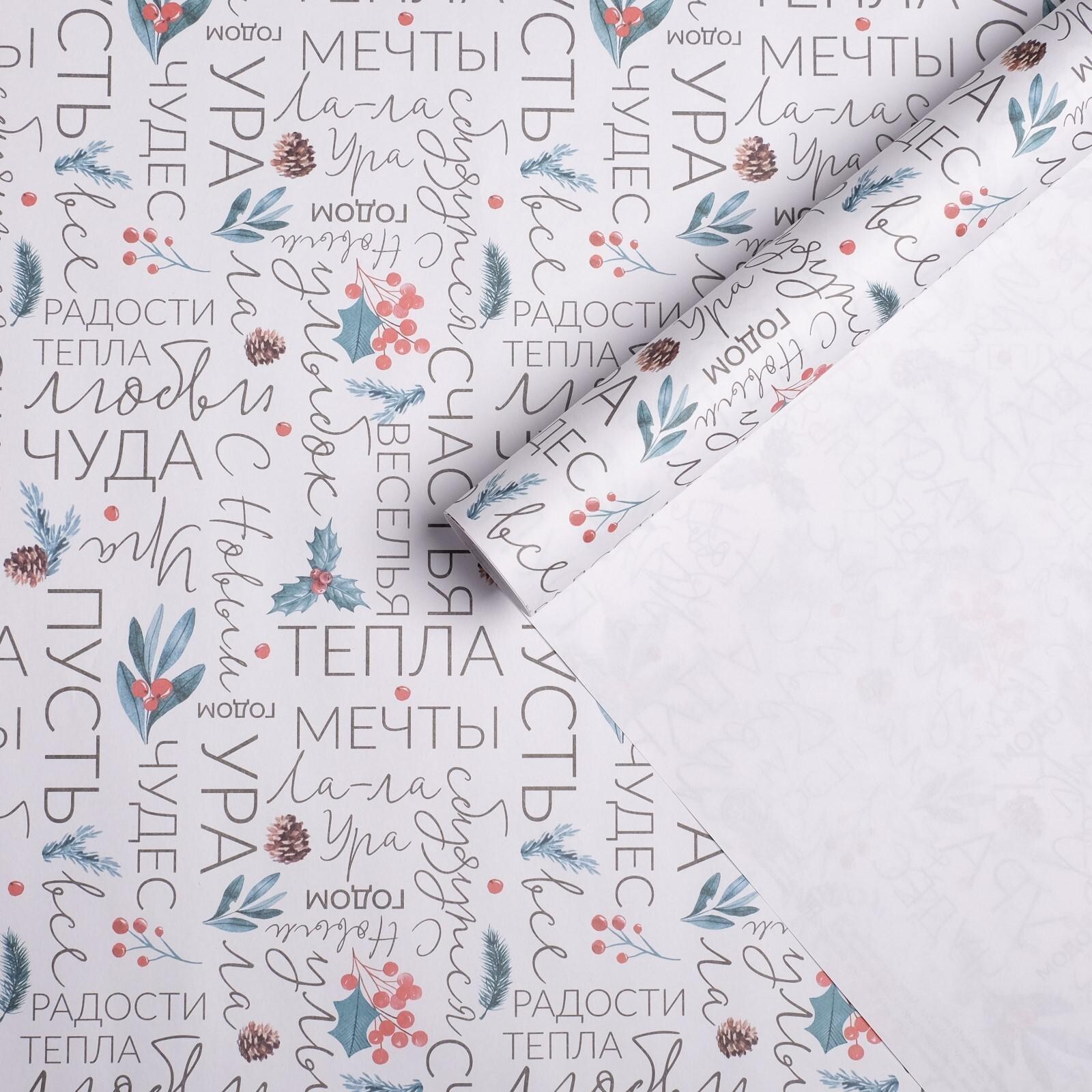 !09 Упаковочная бумага 2 листа на новый год крафтовая «Новогоднее счастье», 70 х 100 см