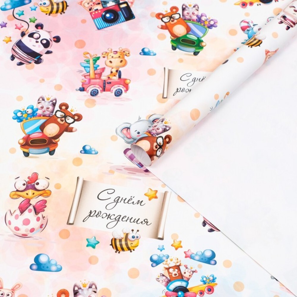 !09 Бумага упаковочная 2 листа глянцевая "Друзья", 100 х 70 см.