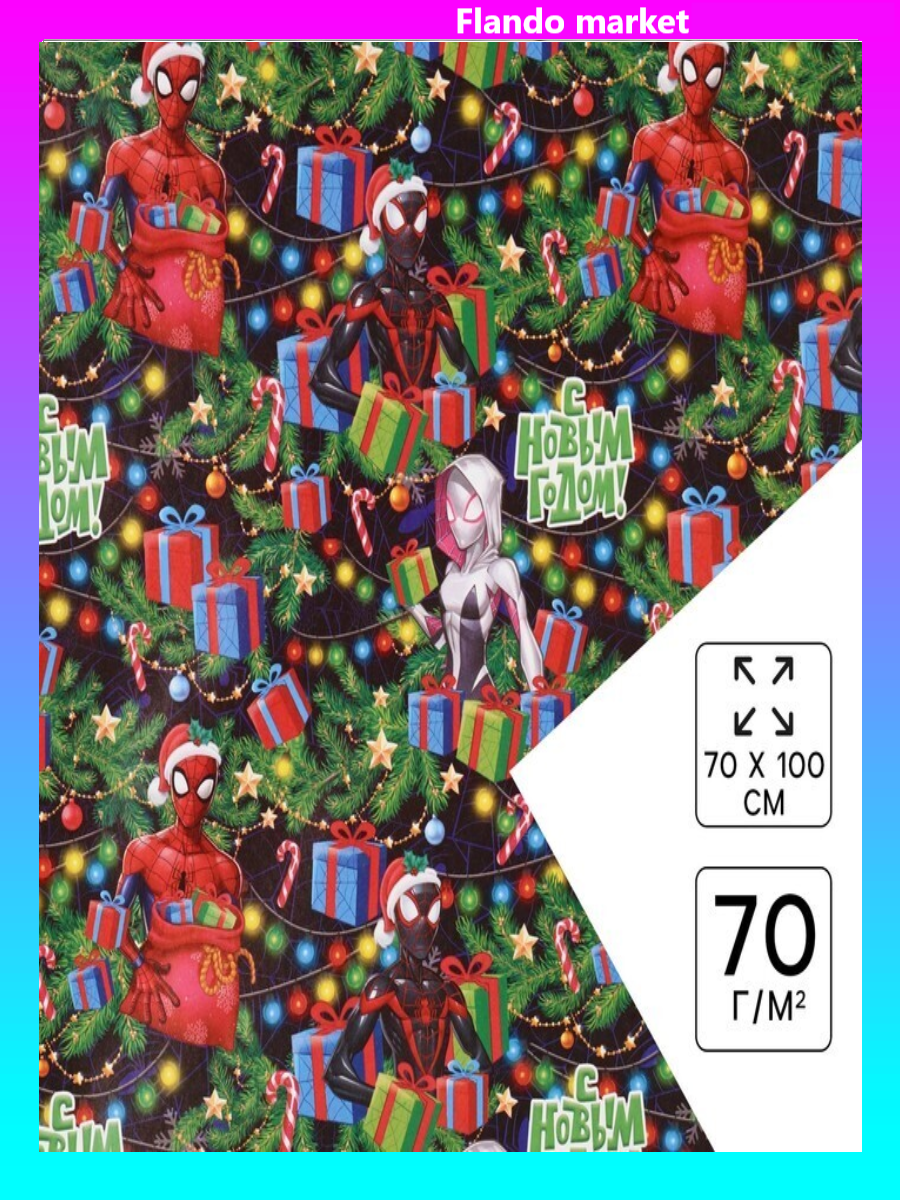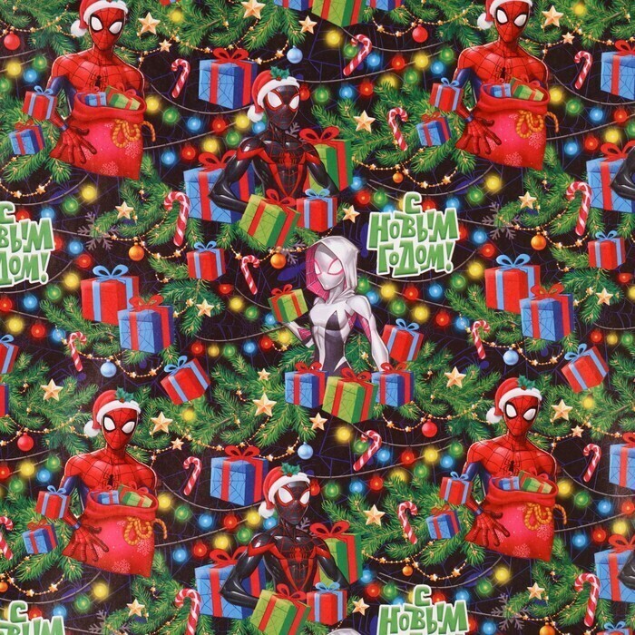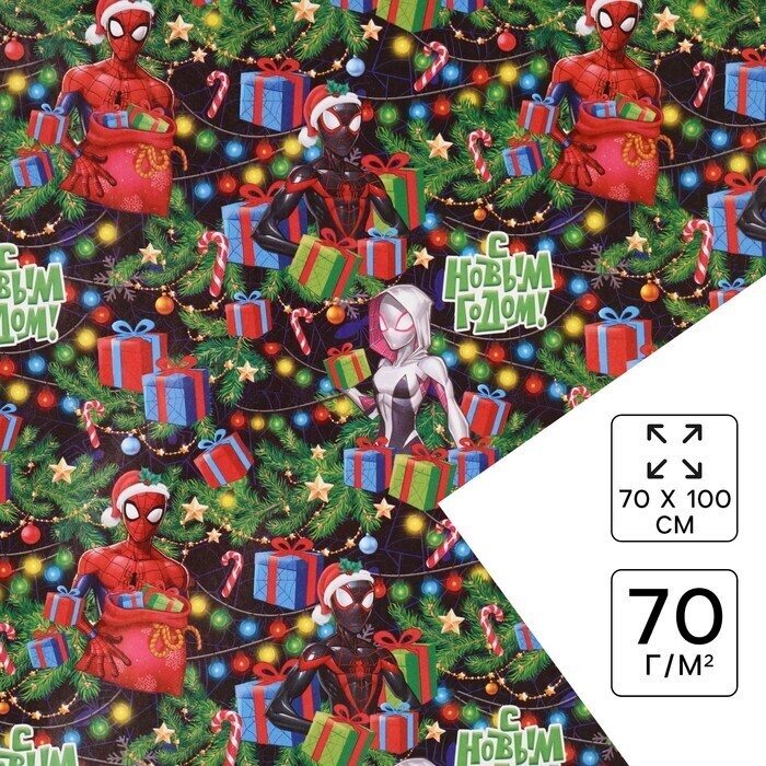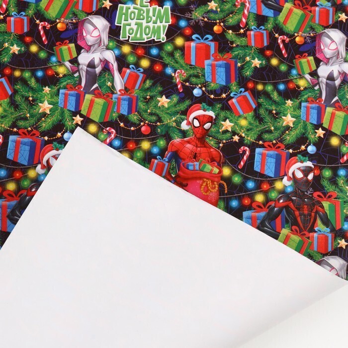 !09 Бумага упаковочная 3 листа «Новый год» 70 х 100 см, Человек паук