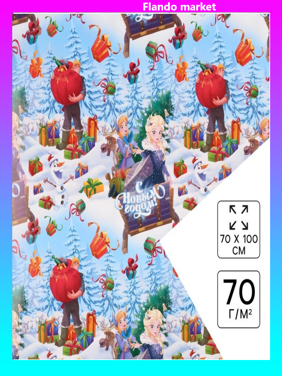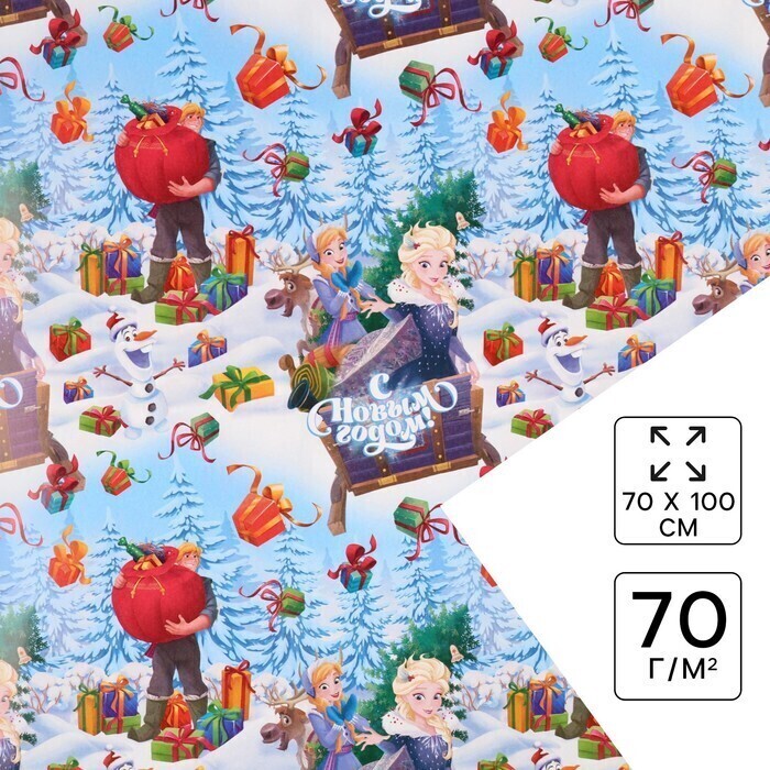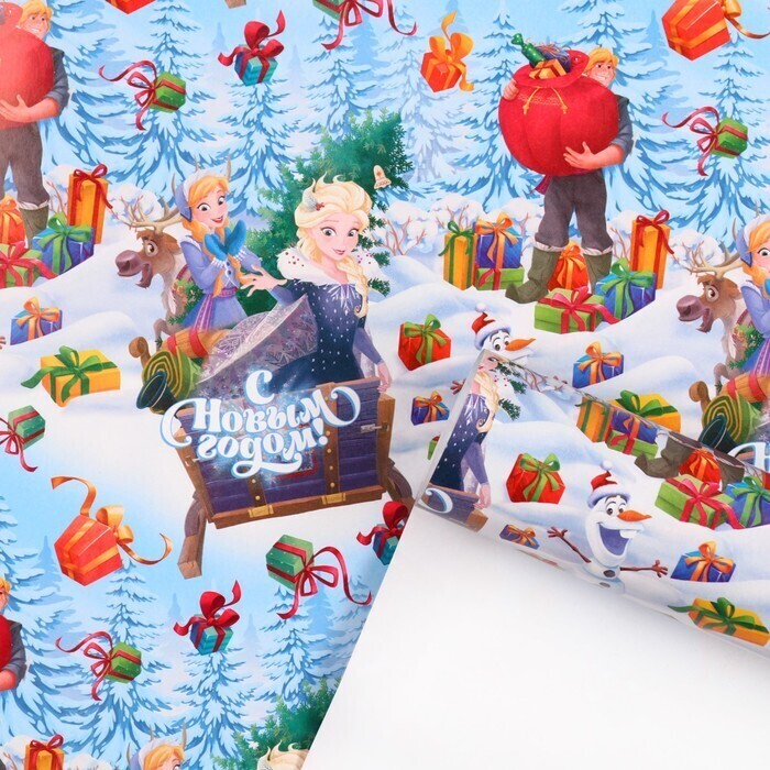 !09 Бумага упаковочная 3 листа «Новый год» 70 х 100 см, Холодное сердце