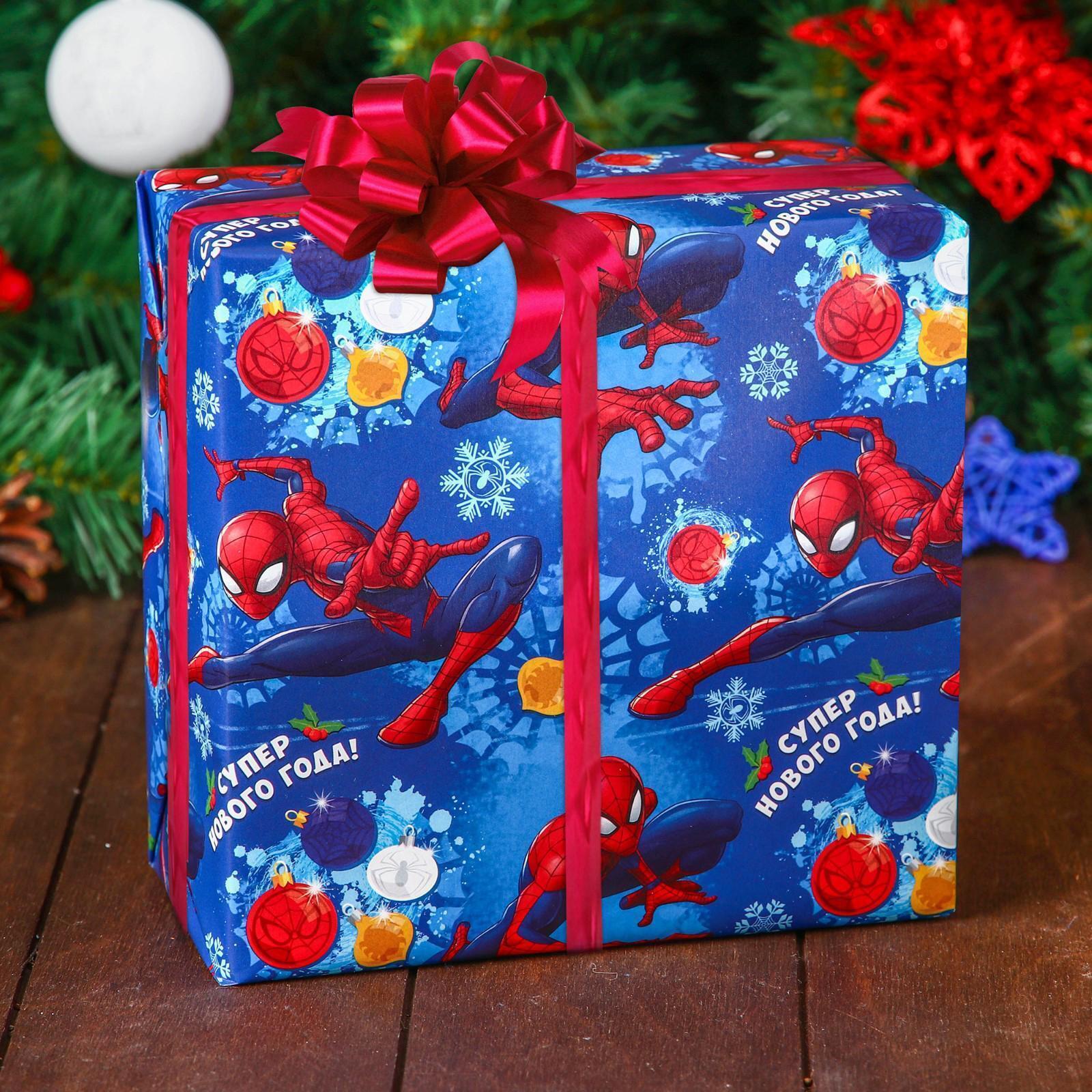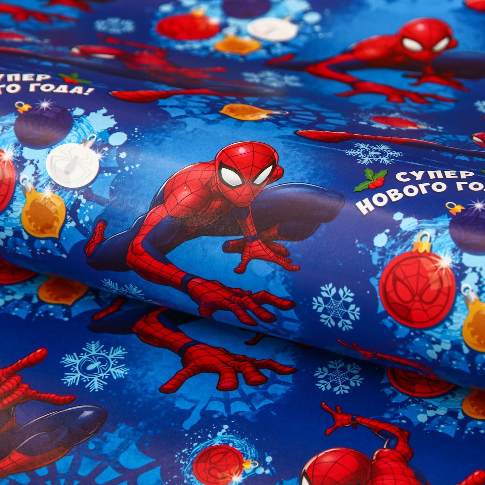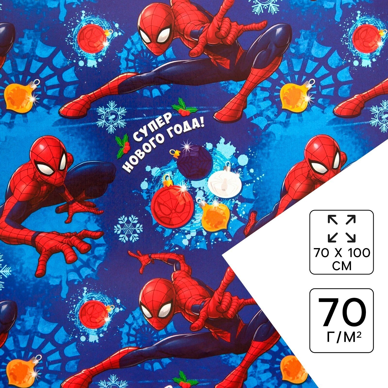 !09 Бумага упаковочная 2 листа глянцевая «С Новым Годом!», Человек-паук, 70 х 100 см