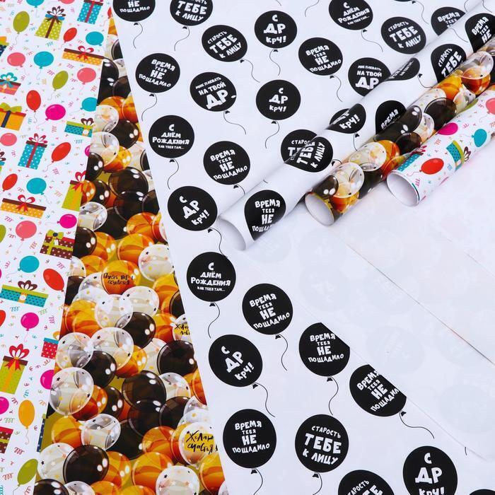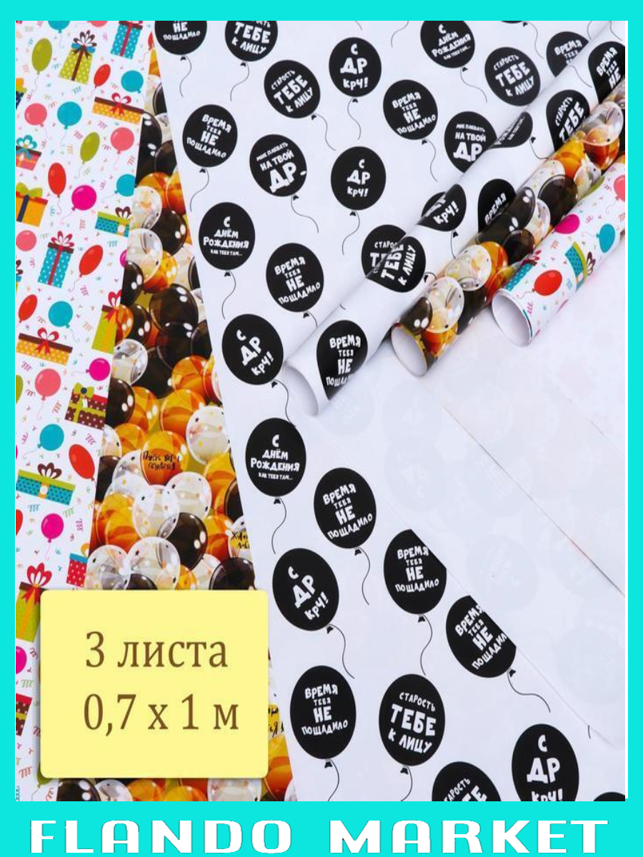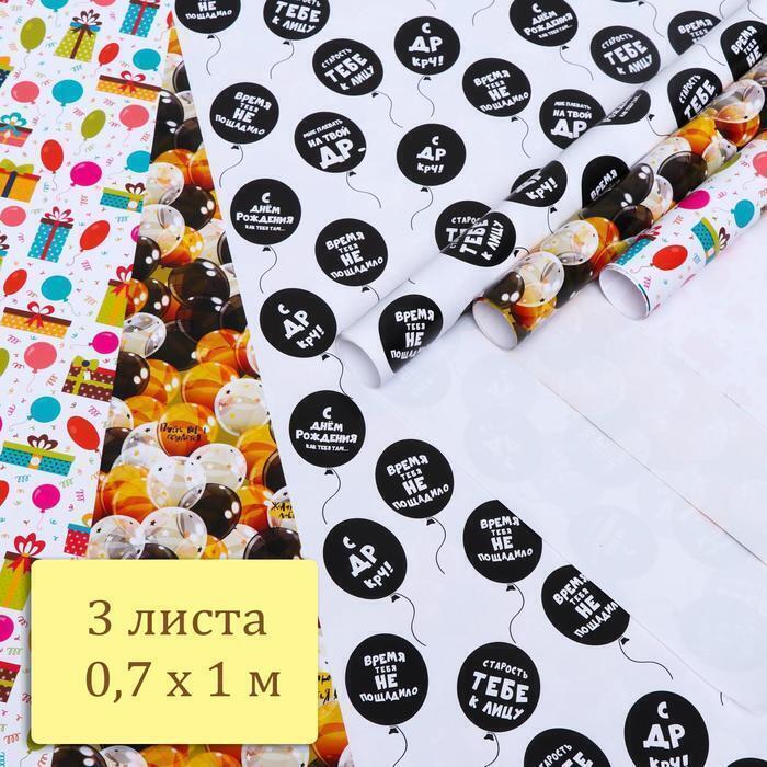 !09 Набор глянцевой бумаги (3 листа) с печатью "С днем рождения", 70 х 100 см.