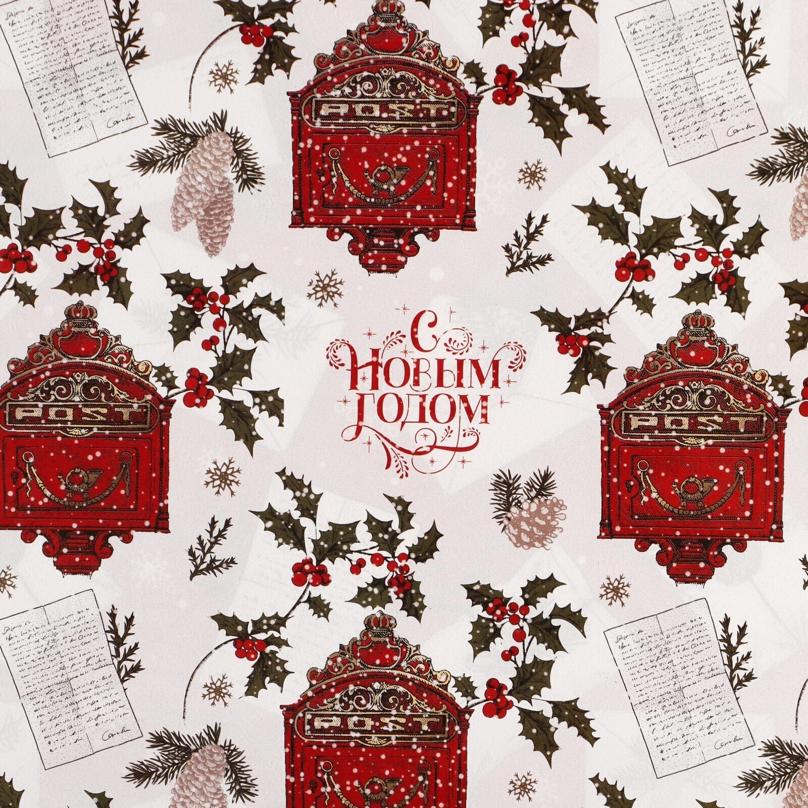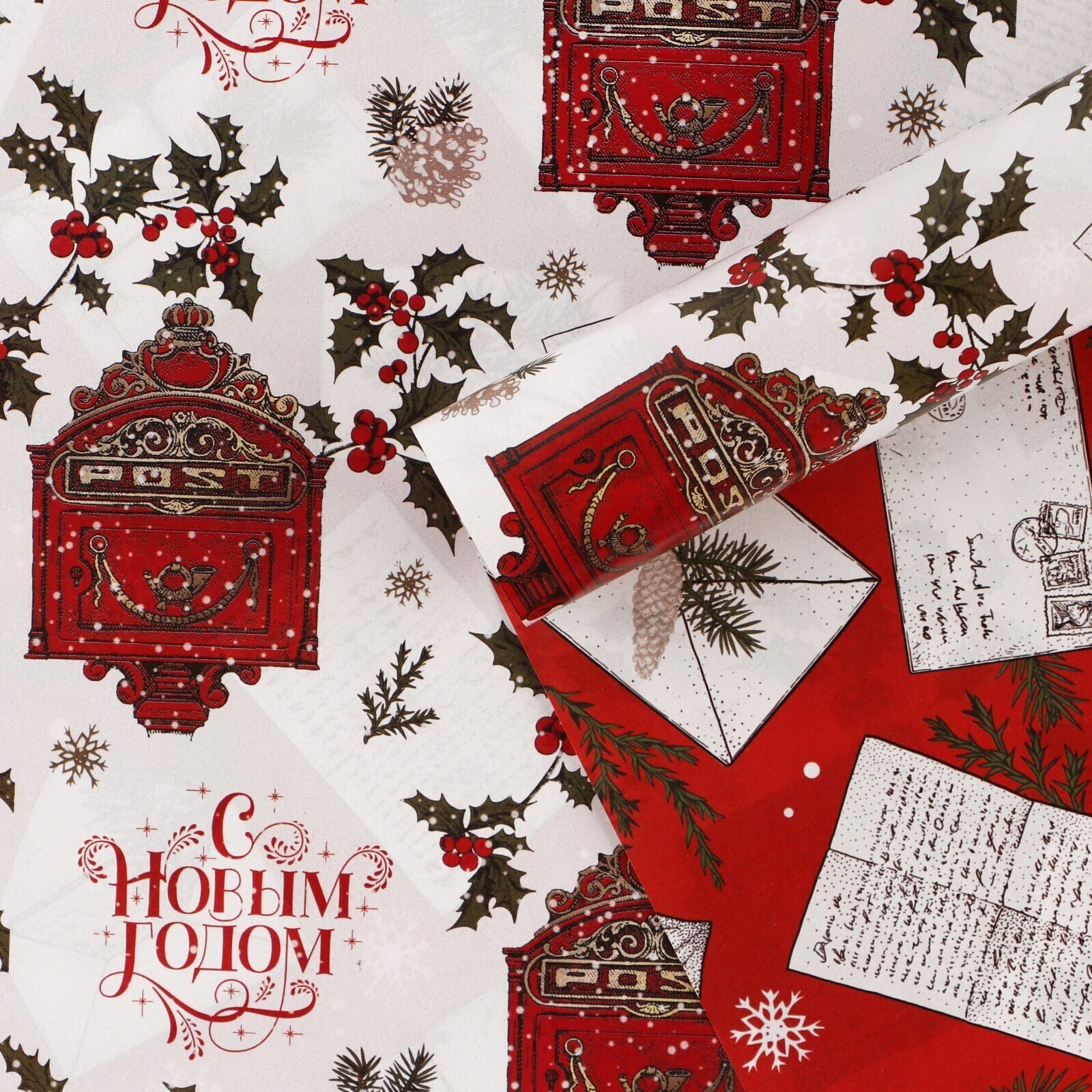 !09 Бумага упаковочная 2 листа глянцевая двухсторонняя «Почта Ретро», 70 х 100 см.