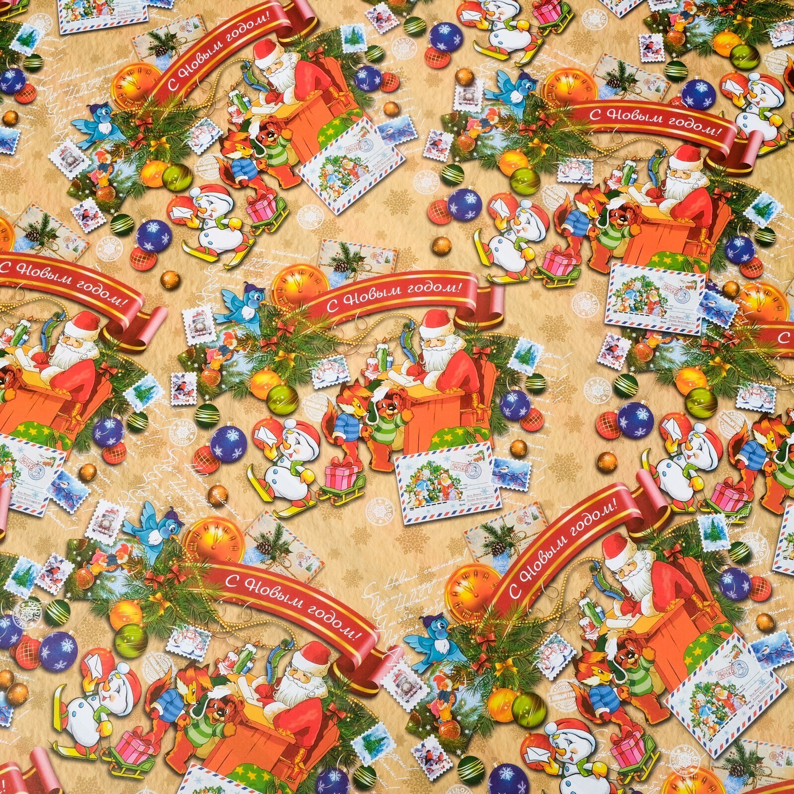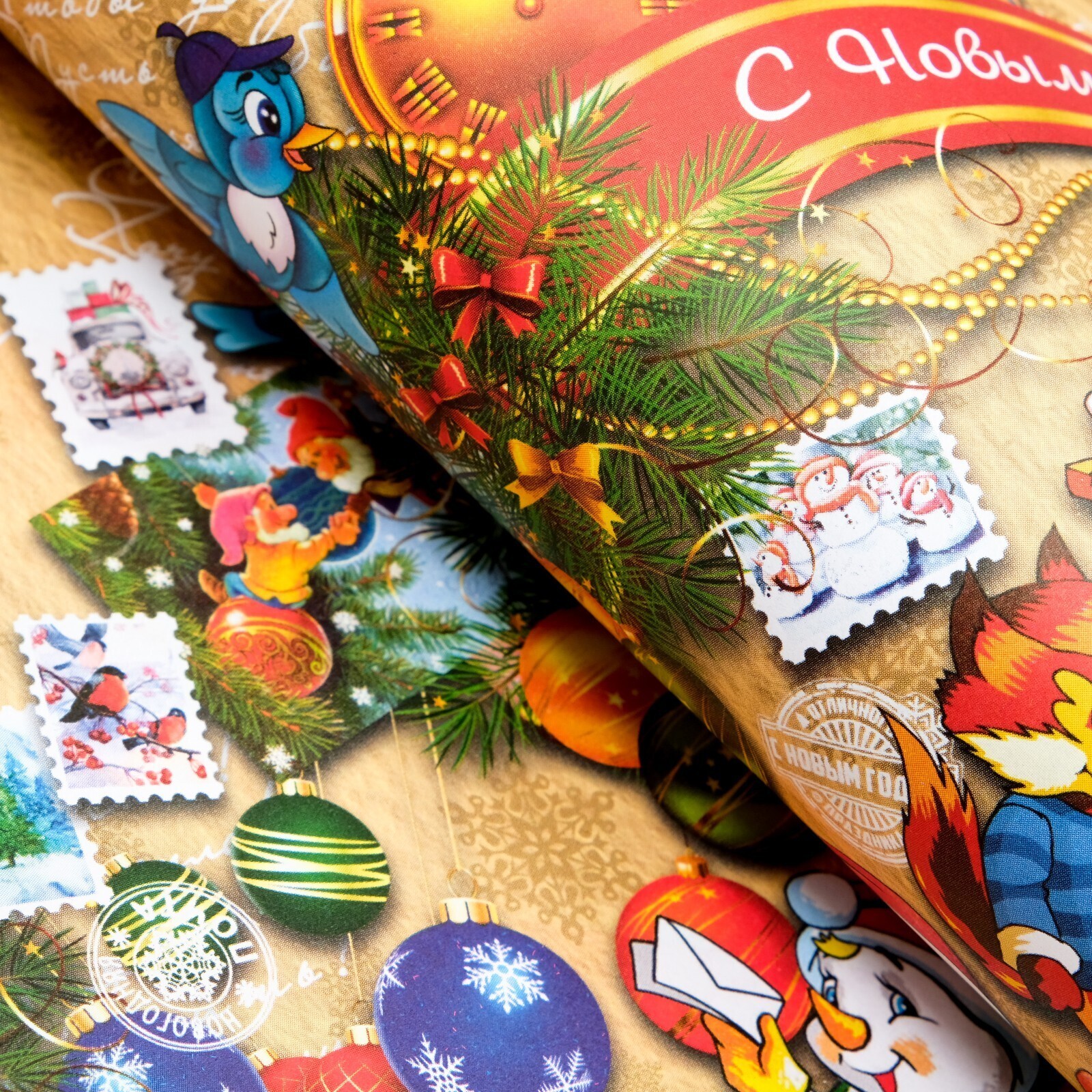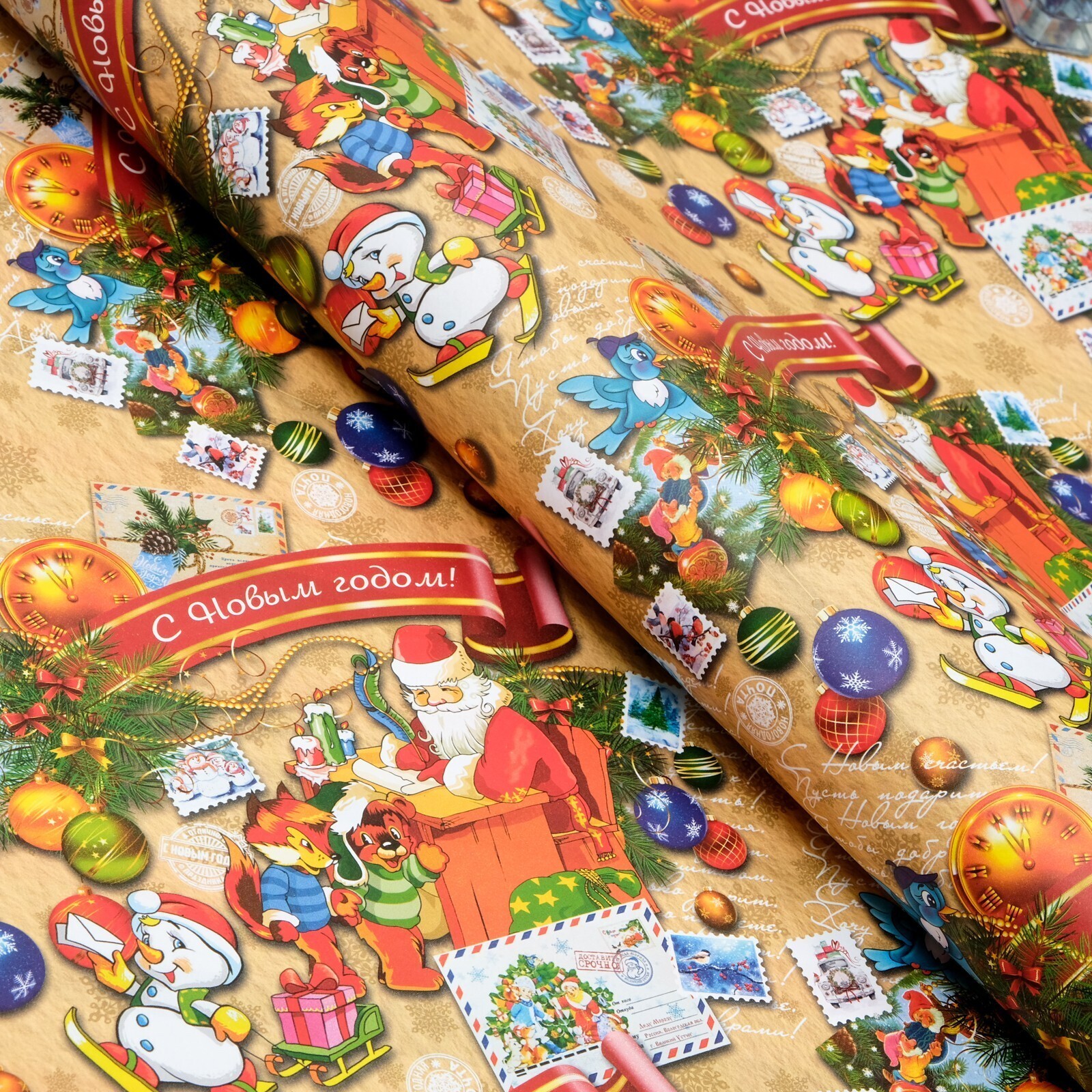 !09 Бумага упаковочная 3 листа глянцевая двухсторонняя «Почта Ретро», 70 х 100 см.
