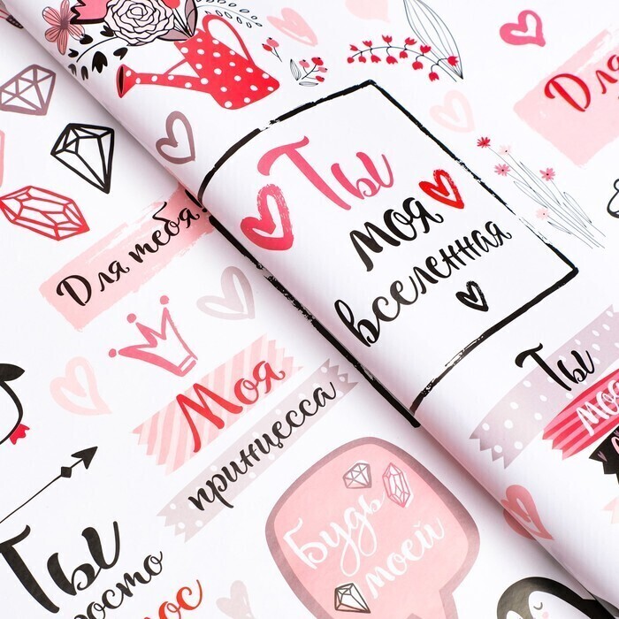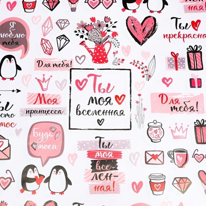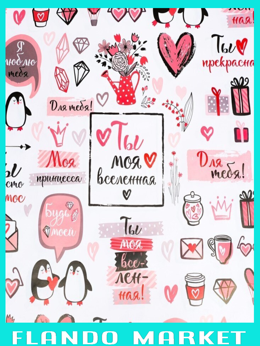 !09 Бумага упаковочная 4 листа глянцевая "Ты моя вселенная" 70 х 100 см.