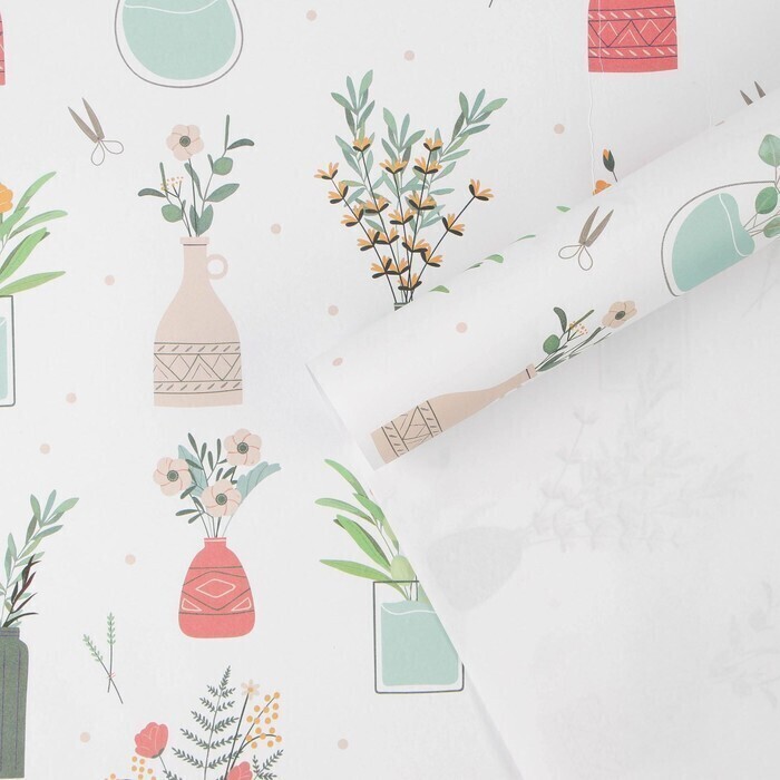 !09 Бумага упаковочная (набор 3 листа) крафтовая «Гербарий», 70 × 100 см.