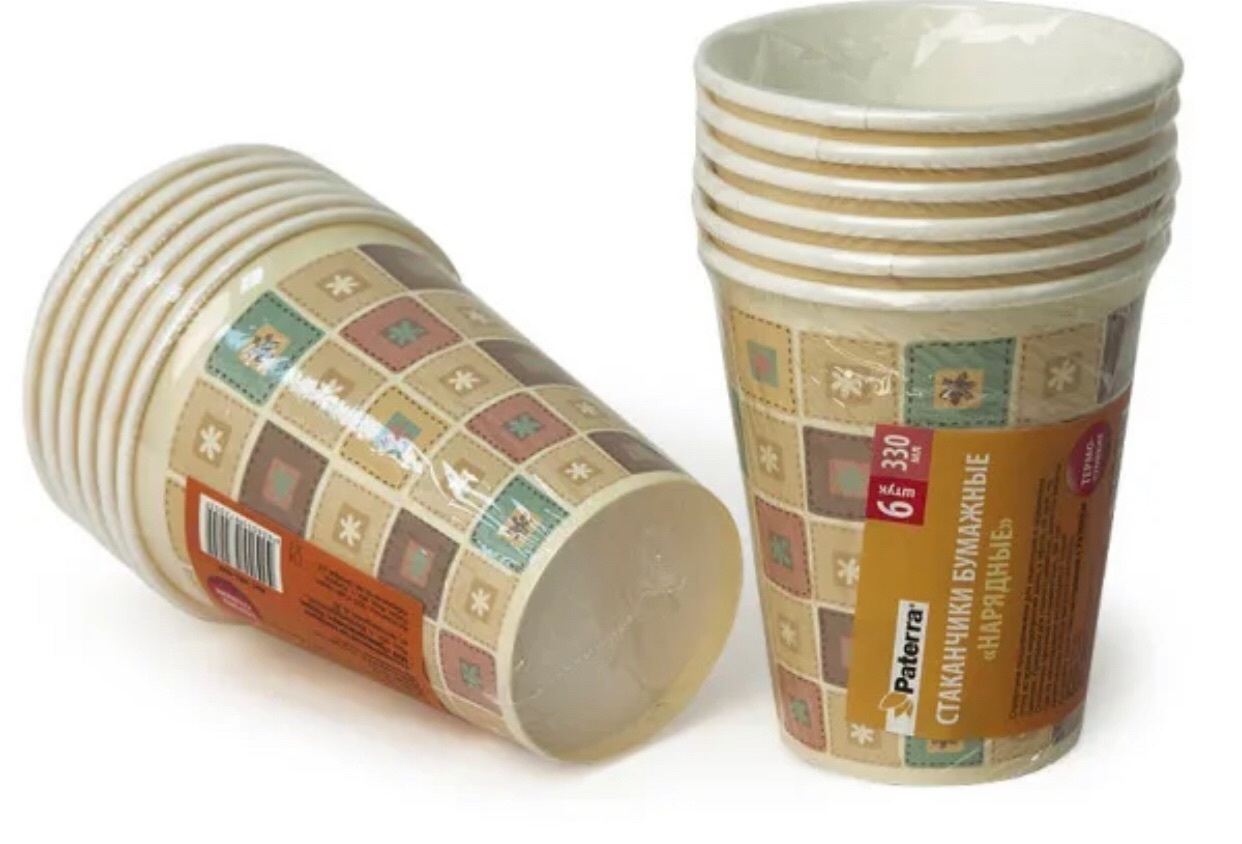 !09 Бумажные стаканы (наборы 12 штук) "Праздничные" 330 мл.