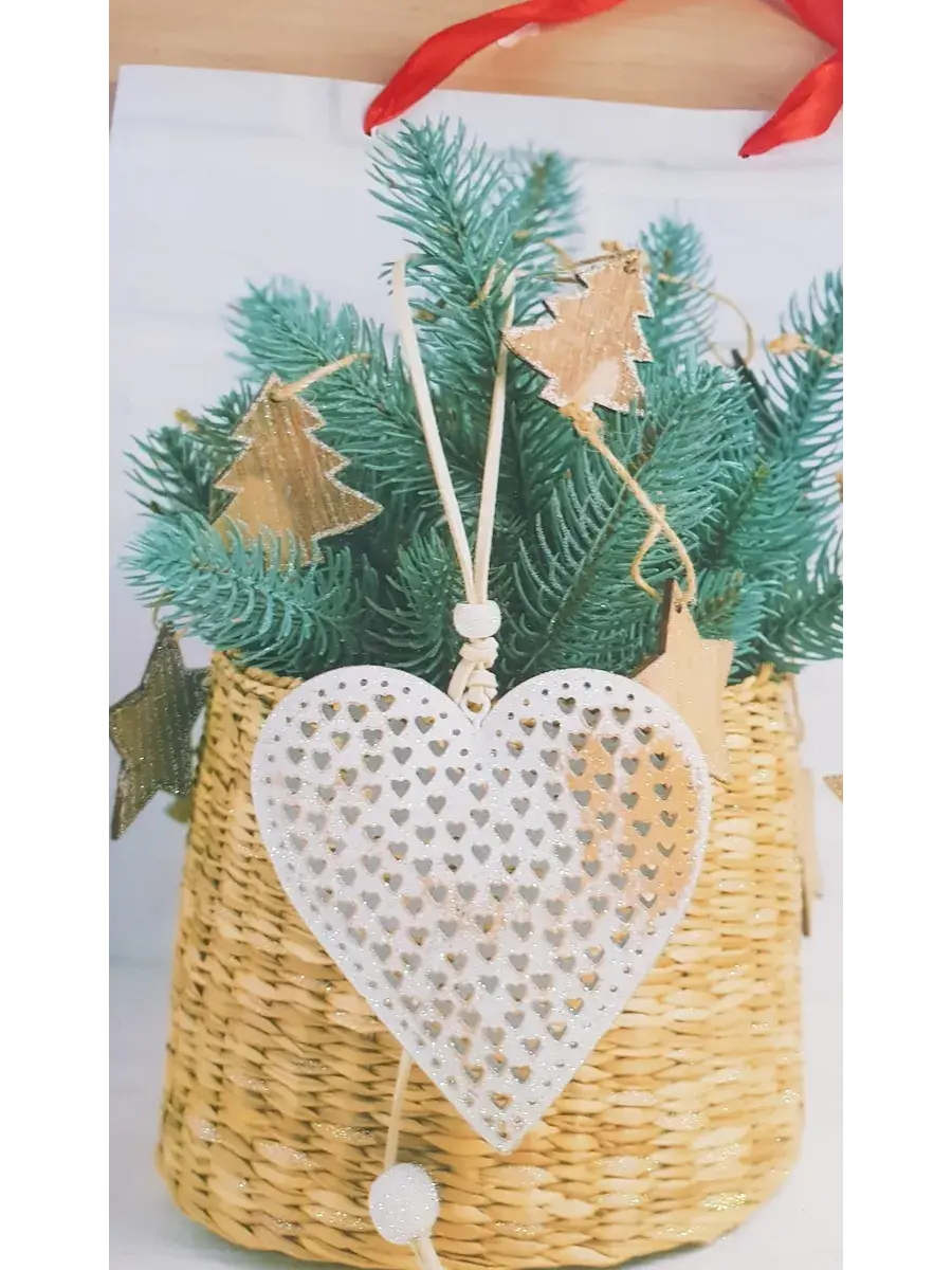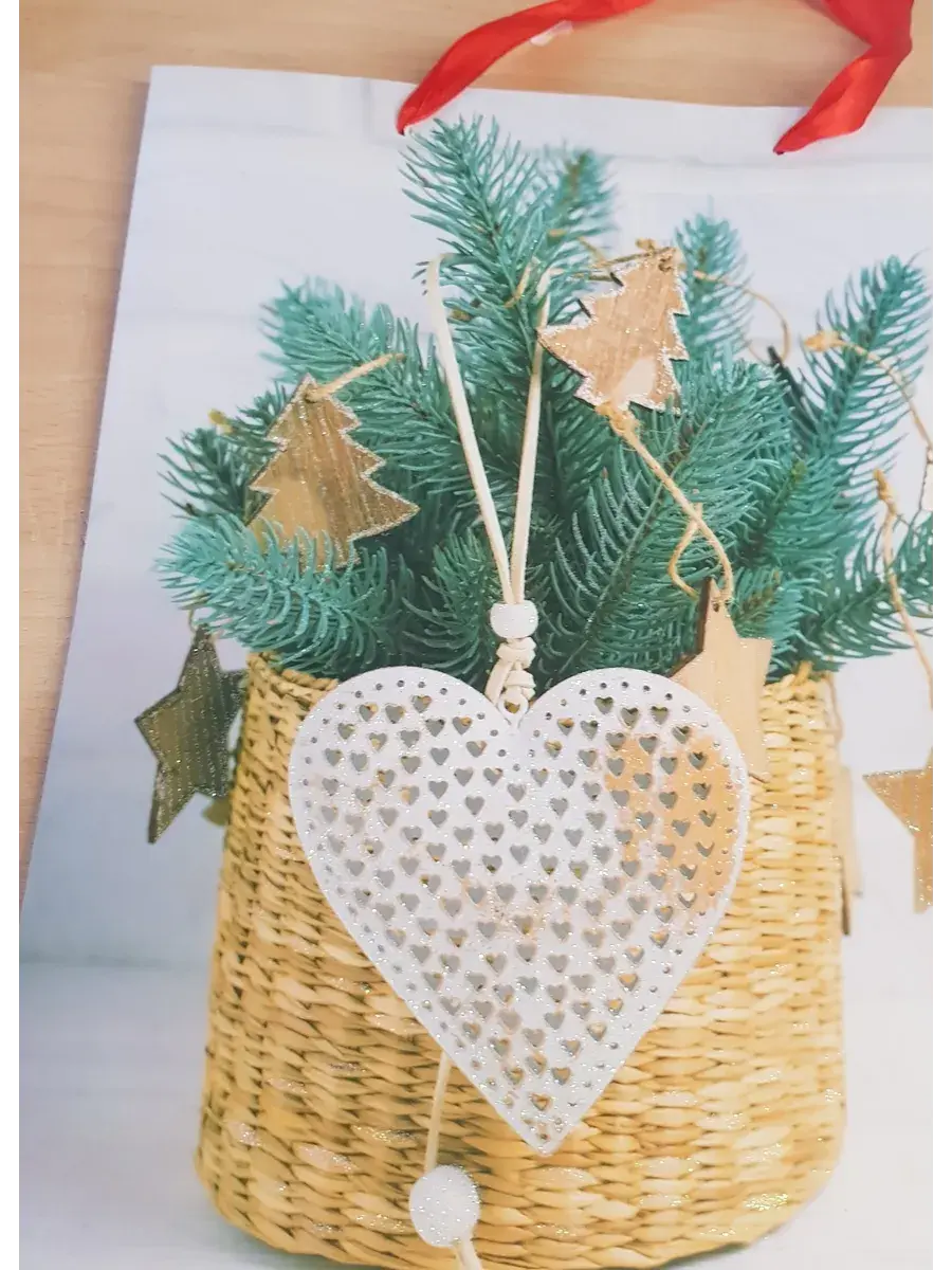 !09 Новогодний пакет (набор 2 штуки): ламинированный «Новогодний фламинго» 31×40×11.5 см. + крафтовый "Новогоднее сердце" 18x23 см.