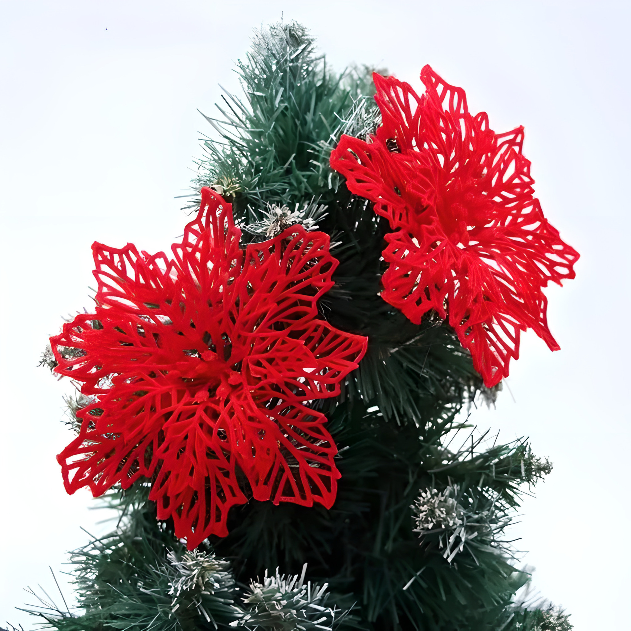 !09 Украшение ёлочное "Резной цветок" (набор 2 шт) 8,5 см, цвет красный