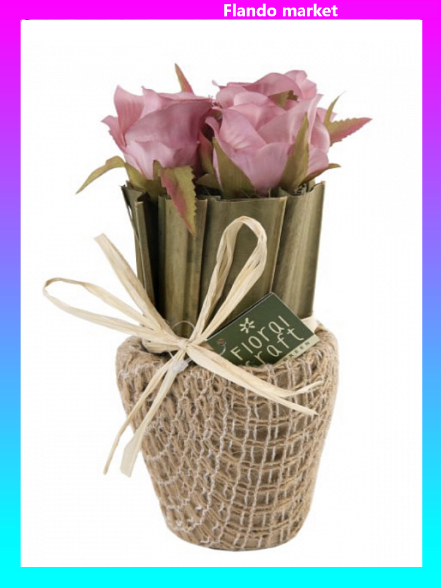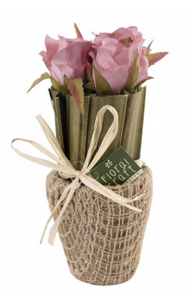!09 Декоративная композиция "Розы", 9x9x20 см. цвет розовый