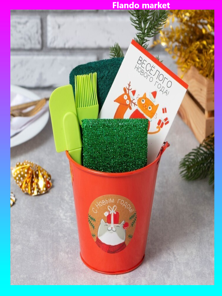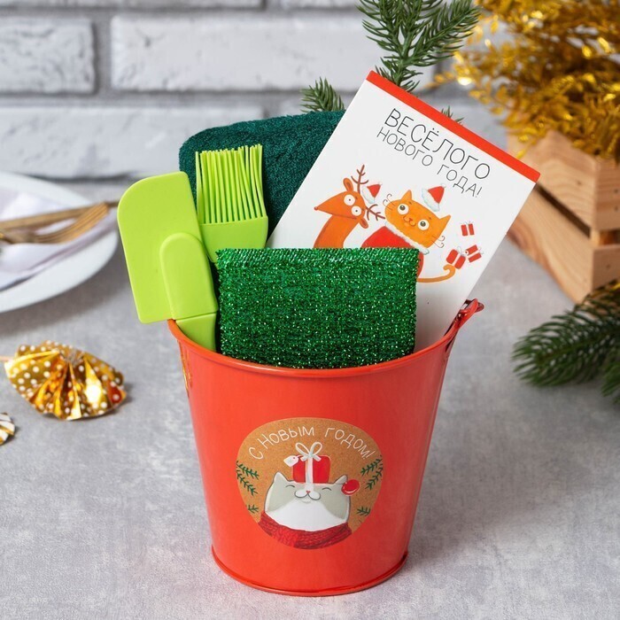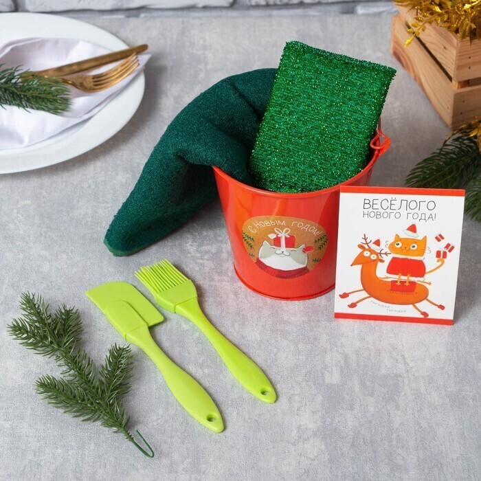 Ведро, Губка для мытья посуды, Кулинарная кисть, Кухонная лопатка, Открытка, Полотенце