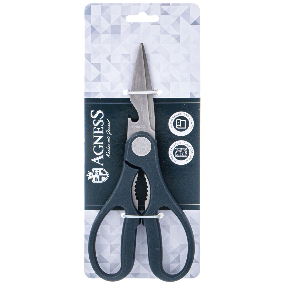 НОЖНИЦЫ КУХОННЫЕ НЕРЖ СТАЛЬ Материал: Нержавеющая сталь/Пластик Мультифункциональные разделочные кухонные ножницы - незаменимый помощник на кухне любой хозяйки. Используются для разделки и очистки рыбы или птицы, обработки овощей, резки картона, текстиля. Ножницы имеют эргономичный дизайн, который обеспечивает удобство и безопасность при работе. Благодаря своей универсальности и долговечности, они станут отличным приобретением на многие годы.