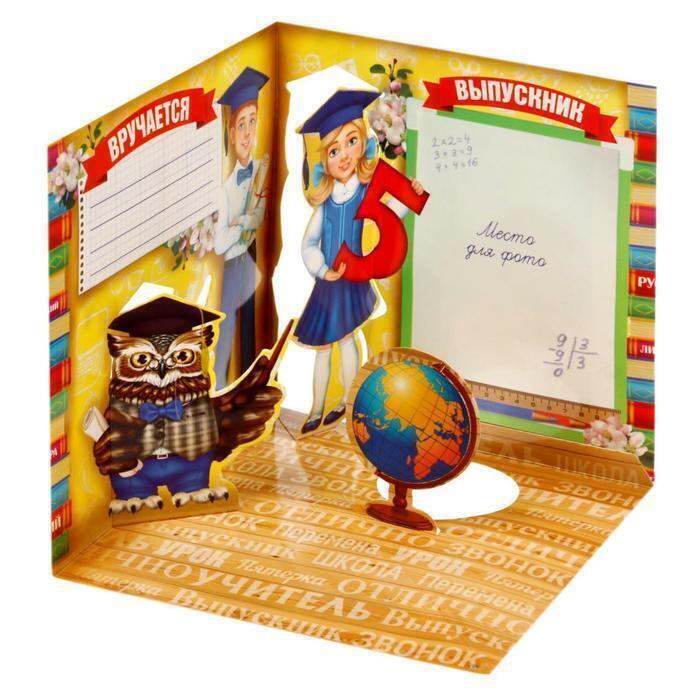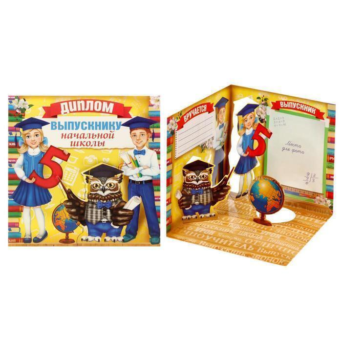 !09 Диплом (набор 5 штук) "Выпускнику начальной школы" с совой, 19,5 х 18 см. 250 г/м²