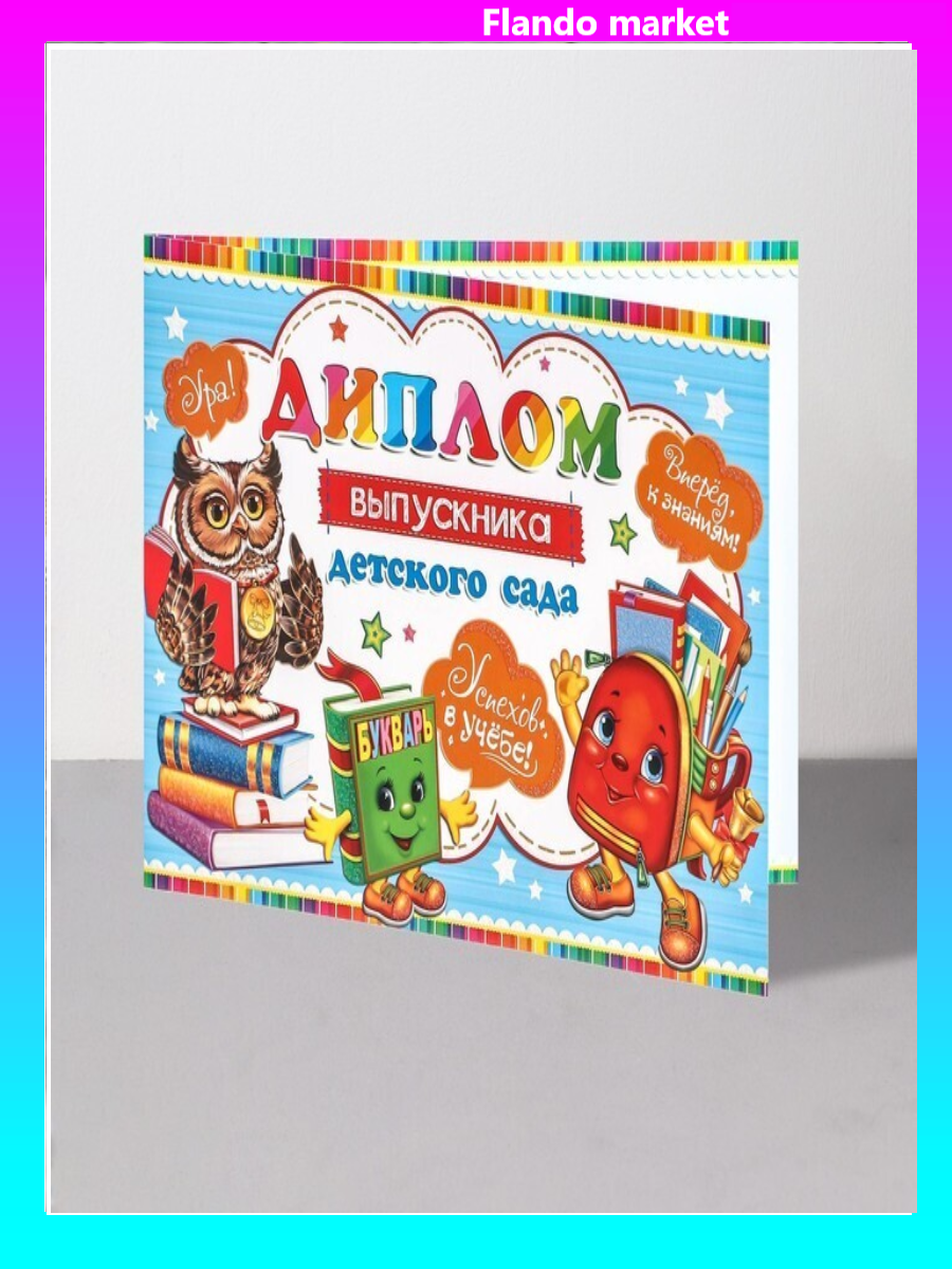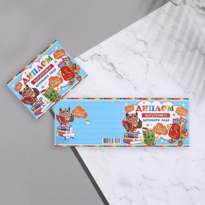 !09 Диплом (набор 10 штук) "Выпускник Детского Сада!" глиттер, сова, портфель, 44,5х16,5 см.