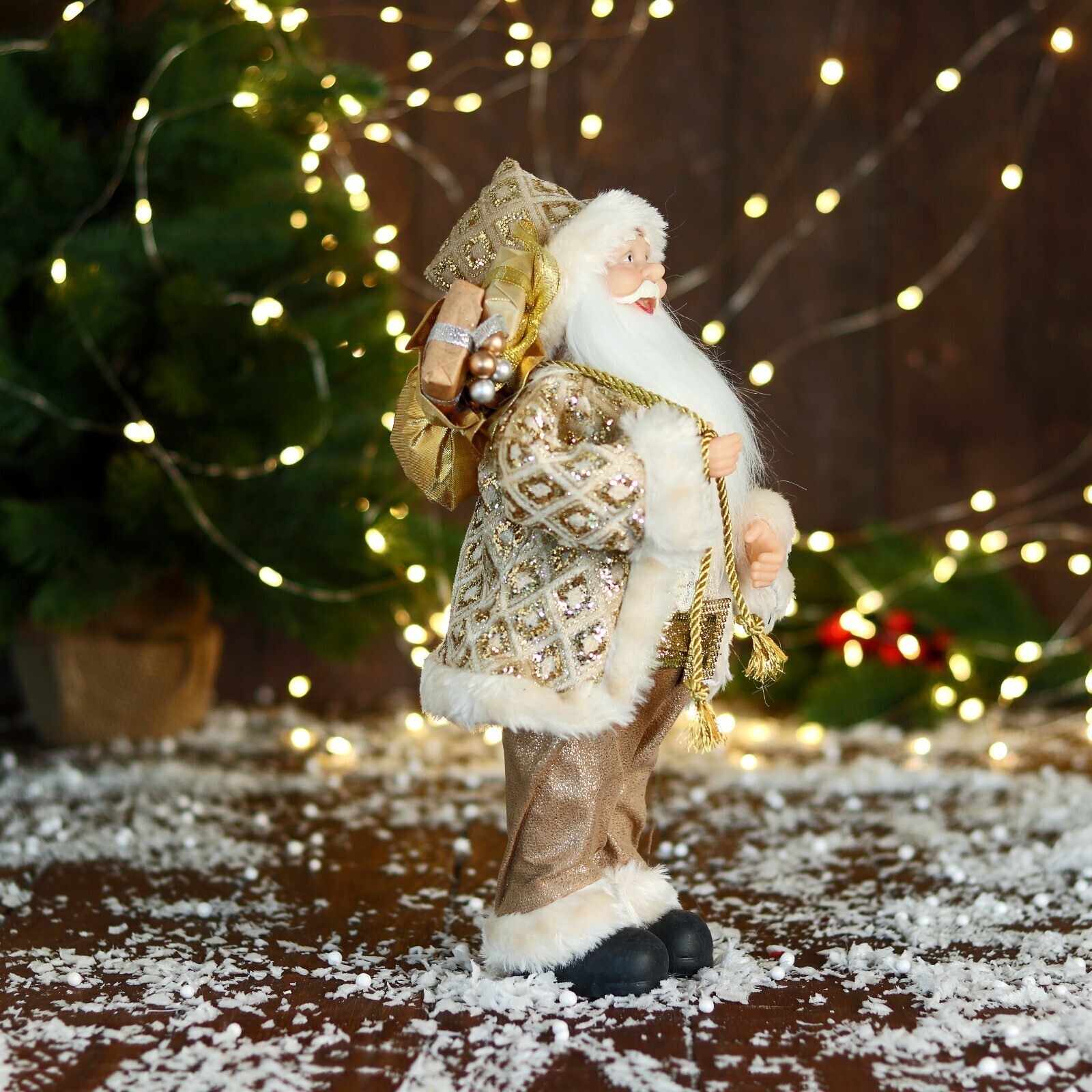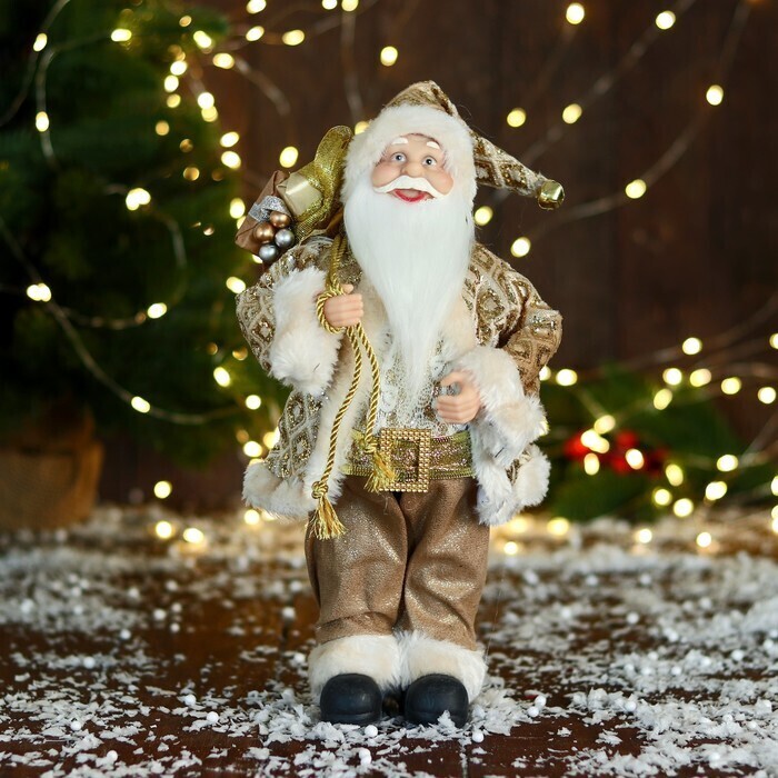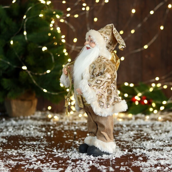!09 Дед Мороз "В золотой шубе, с ремешком, и подарками" 16х30 см.