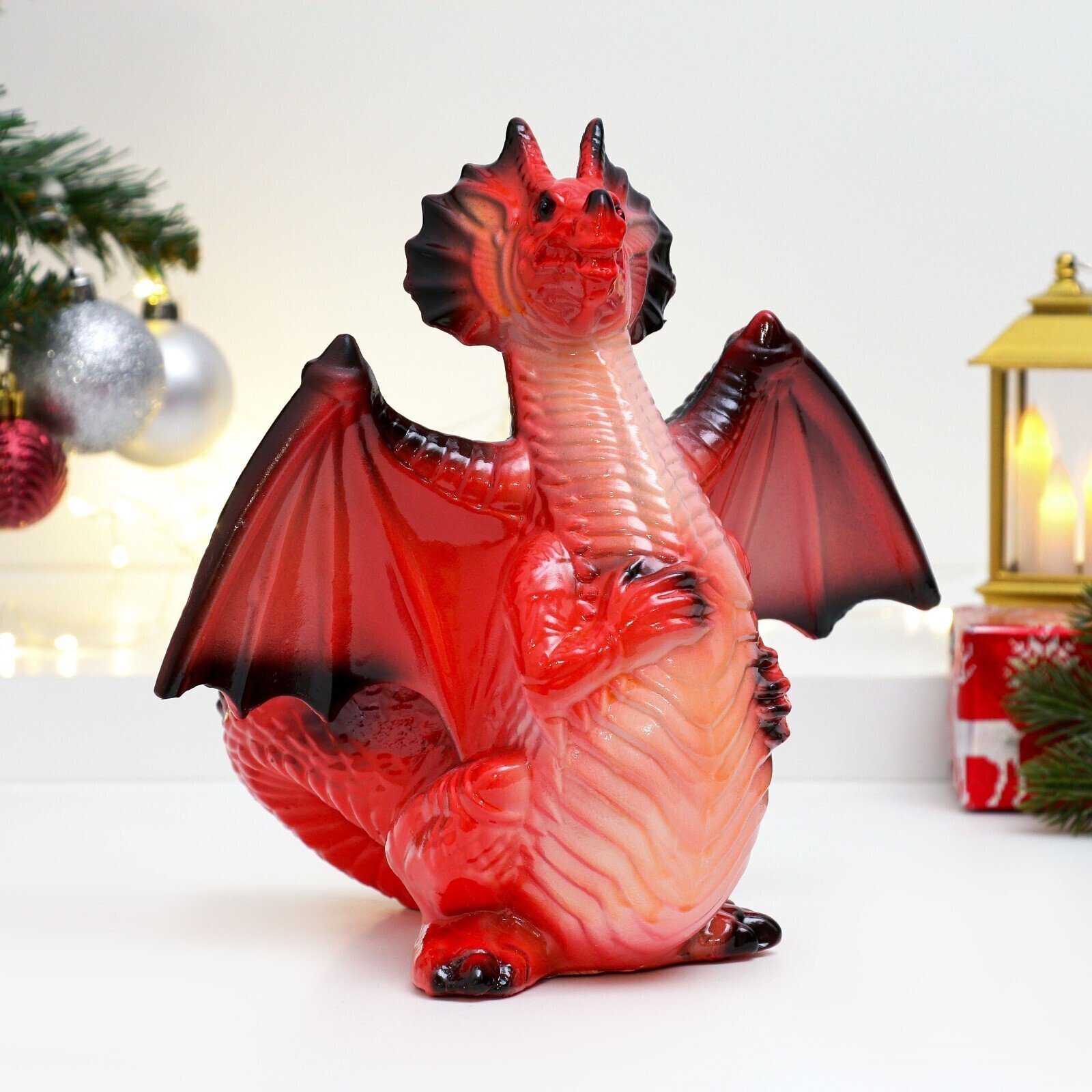 !09 Фигура "Крылатый дракон", 23 см., цвет красный