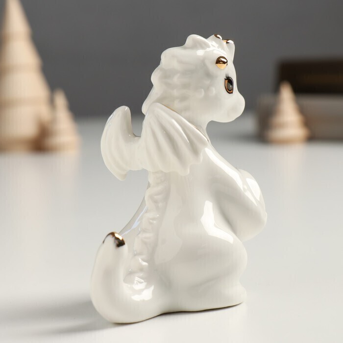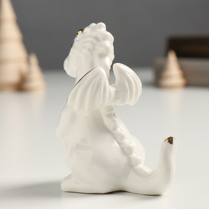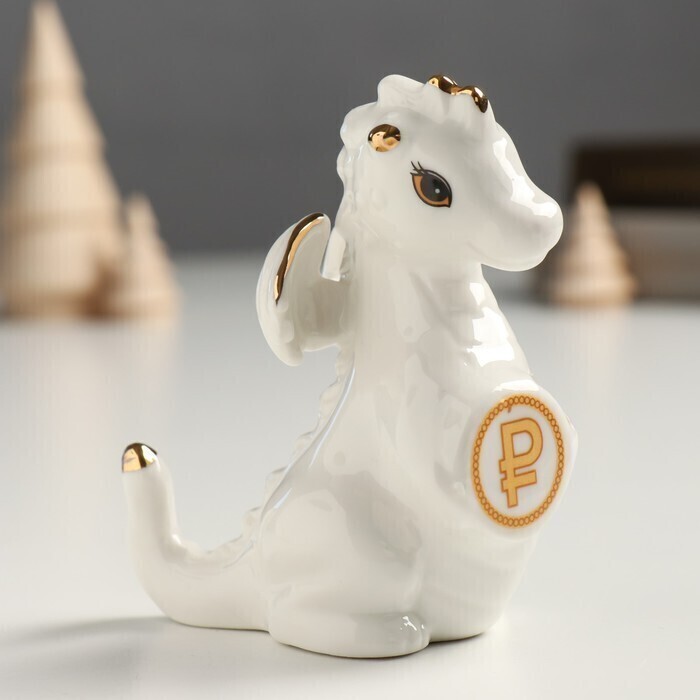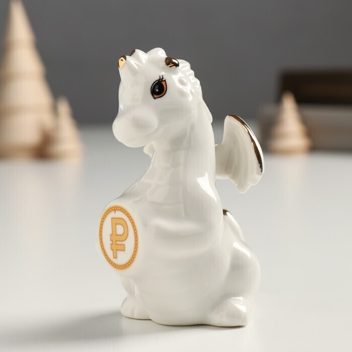 !09 Сувенир керамика "Дракоша с монеткой - рубль" бело-золотой 5х7х9 см.