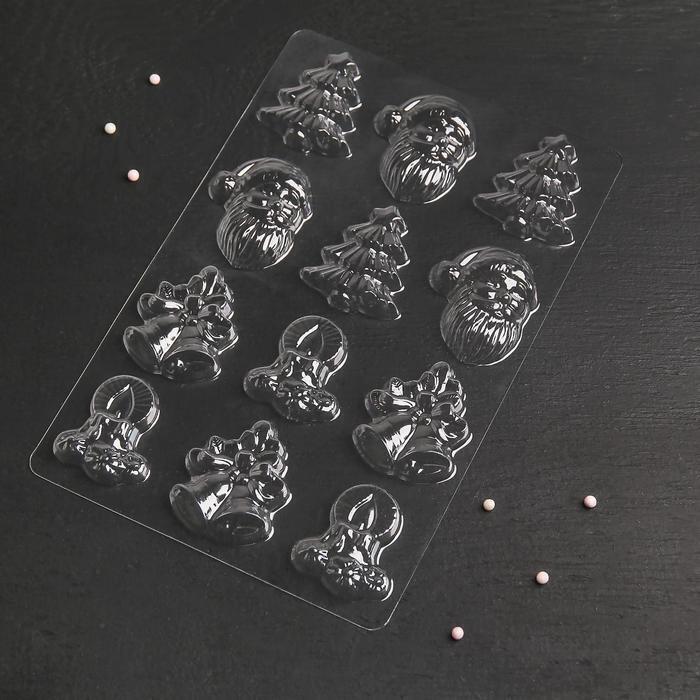 !09 Форма для шоколада новогодняя «Рождество», 12 ячеек, 15×8 см, цвет прозрачный