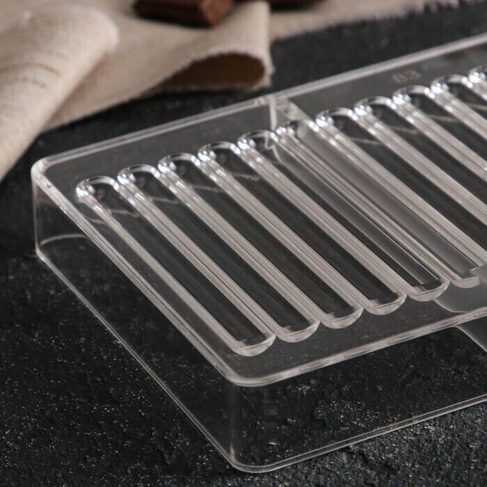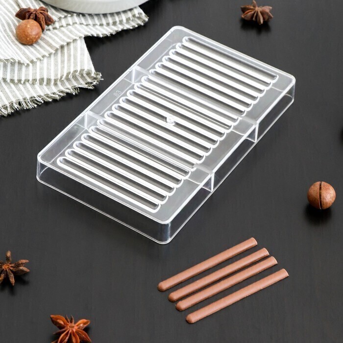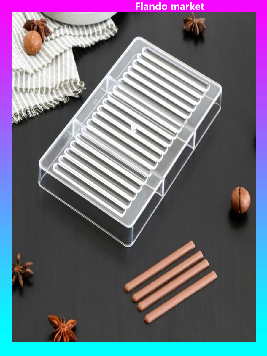 !09 Форма для шоколада и конфет «Сигаро», 18 ячеек, 20×12×2,5 см, ячейка 8,5×0,7 см